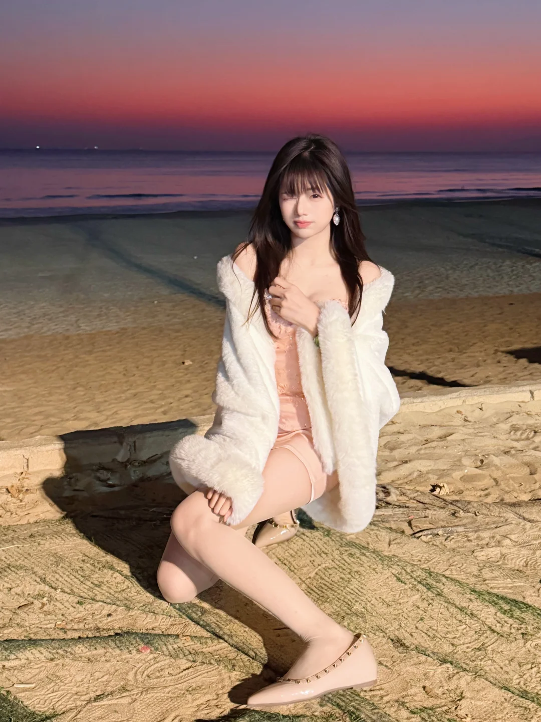 甜妹穿搭 软妹穿搭 一起看日落吧 看夕阳西下 海边拍照