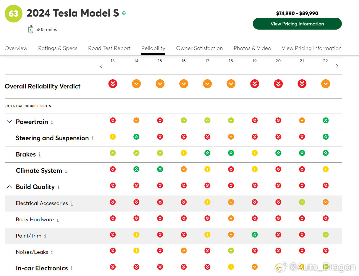 2026款Model S Plaid:挤尽最后一点牙膏这代ModelS已经推出13年了,26款迎来第四次小改款:Plaid相比之前基本没实质提升,没有减重,动力和电池完全一样,隔音滤震也没有实质性提升。这和减肥成功且提升明显的26款Model X完全不同。优点:26款新的Frozen Blue冰霜蓝很好看,而且漆面质量是我见过特斯拉里最好的。后备箱开口大空间大,适合载物。FSD14.2智驾的能力确实比12、13提升明显,能日常用了。电耗仍然顶尖。还是个纯直线机器,加速很狂暴,但转向、刹车、底盘操控都比较差。高速噪音和我的Model3几乎一个水平,前后排座椅舒适度不如Model 3P。由于转向电子感MAX,0回馈。这车开很快也是没什么信心和乐趣的,你只能选择相信车而不是相信你在掌控车,这也是明显不如3P的地方。1020匹的动力走街完全用不上,轮胎不热的话70%油门轮胎就在打滑,动力释放不到路面上,乱踩不但危险还容易晕。唯一的作用就是整蛊一下乘客炫耀一下动力。山路和赛道开这车肯定是没什么乐趣的,而且之前激烈驾驶转向助力和刹车容易过热失效的问题也不知道解决没。Plaid的原厂米其林PS4S轮胎配方从T1升级成了最新的T2,胎壁更酷但感受不到变化。这车我是不太想写长文的。如果你是特斯拉的狂热粉,有实力买就完了,这是世界上最好的汽车。如果你是普通消费者,那这车除了快和省电其他方面无可取之处。《消费者报告》上的可靠性记录也很差,身边也有朋友的Plaid也是两年坏10处申请柠檬车成功。实在喜欢买2年车龄的不到半价的二手车是更理性的选择。