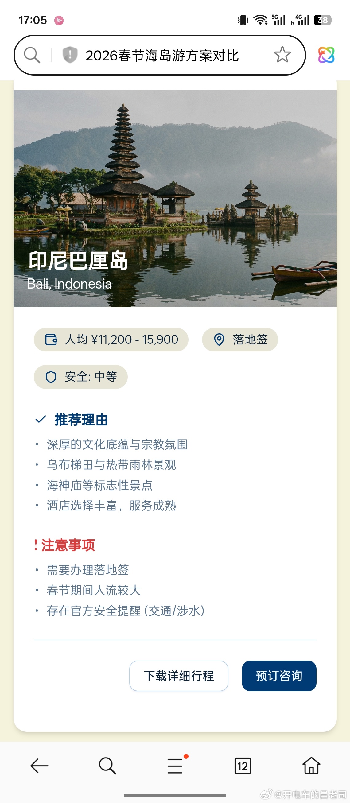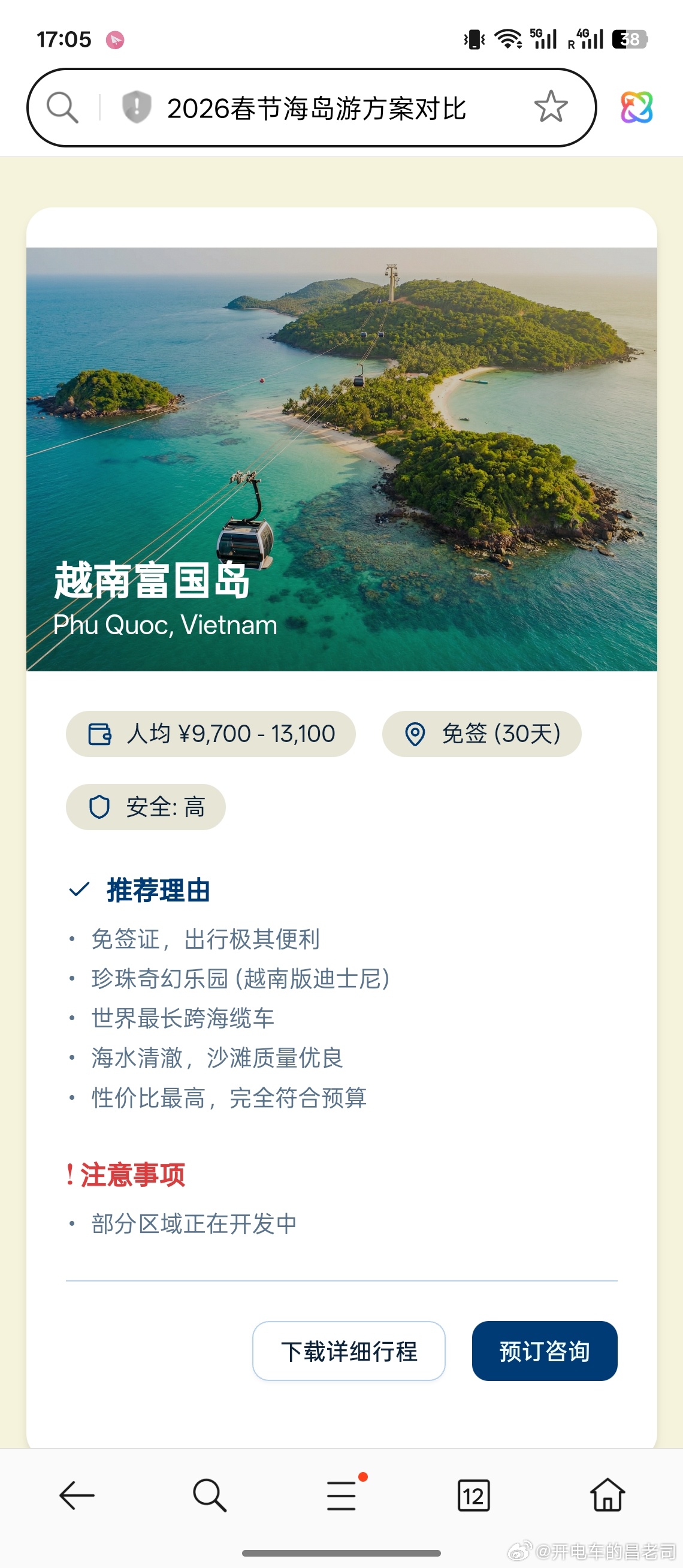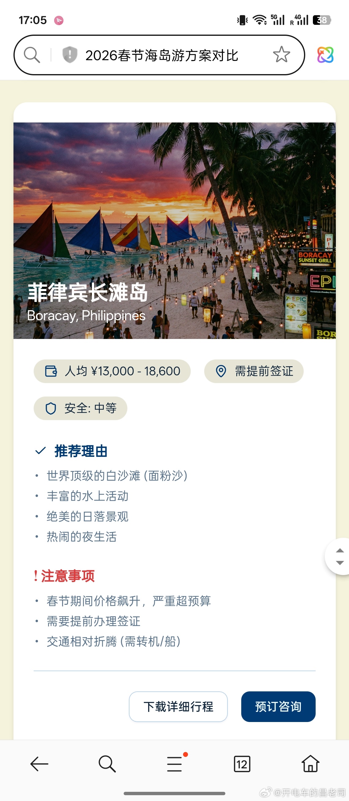 昨晚我让Manus给我做了个春节东南亚海岛游计划,给我推荐了越南、印尼、菲律宾三
