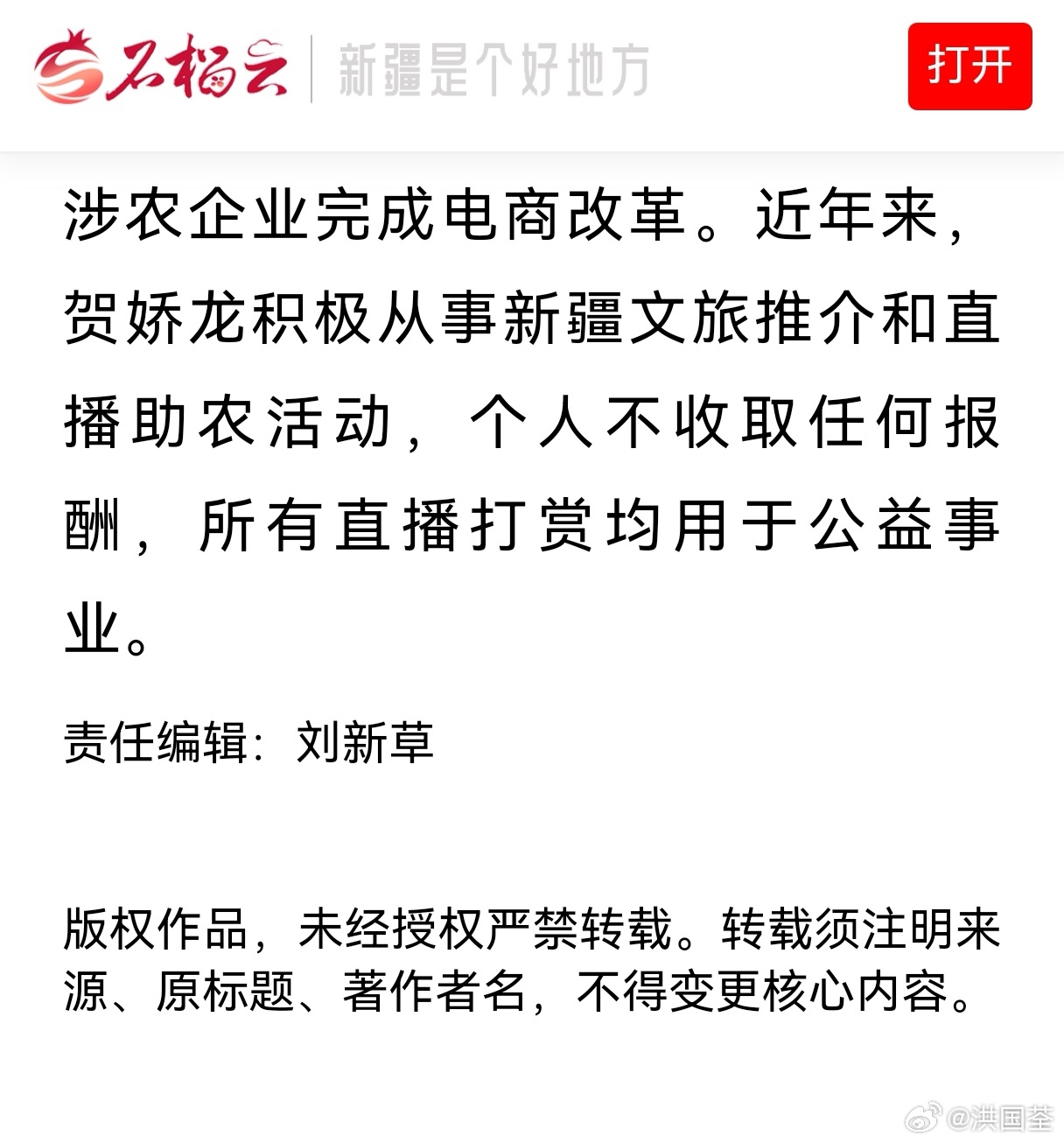 贺娇龙到底还是走了,好可惜!2020年,她一袭红衣,英姿飒爽,扬鞭策马的女侠形象,出现在某视频平台,她带火了当地旅游,把当地农产品通过电商平台销售出去,对当地经济发展起到了很大作用,这是个一心想着当地百姓和经济发展的优秀的人!