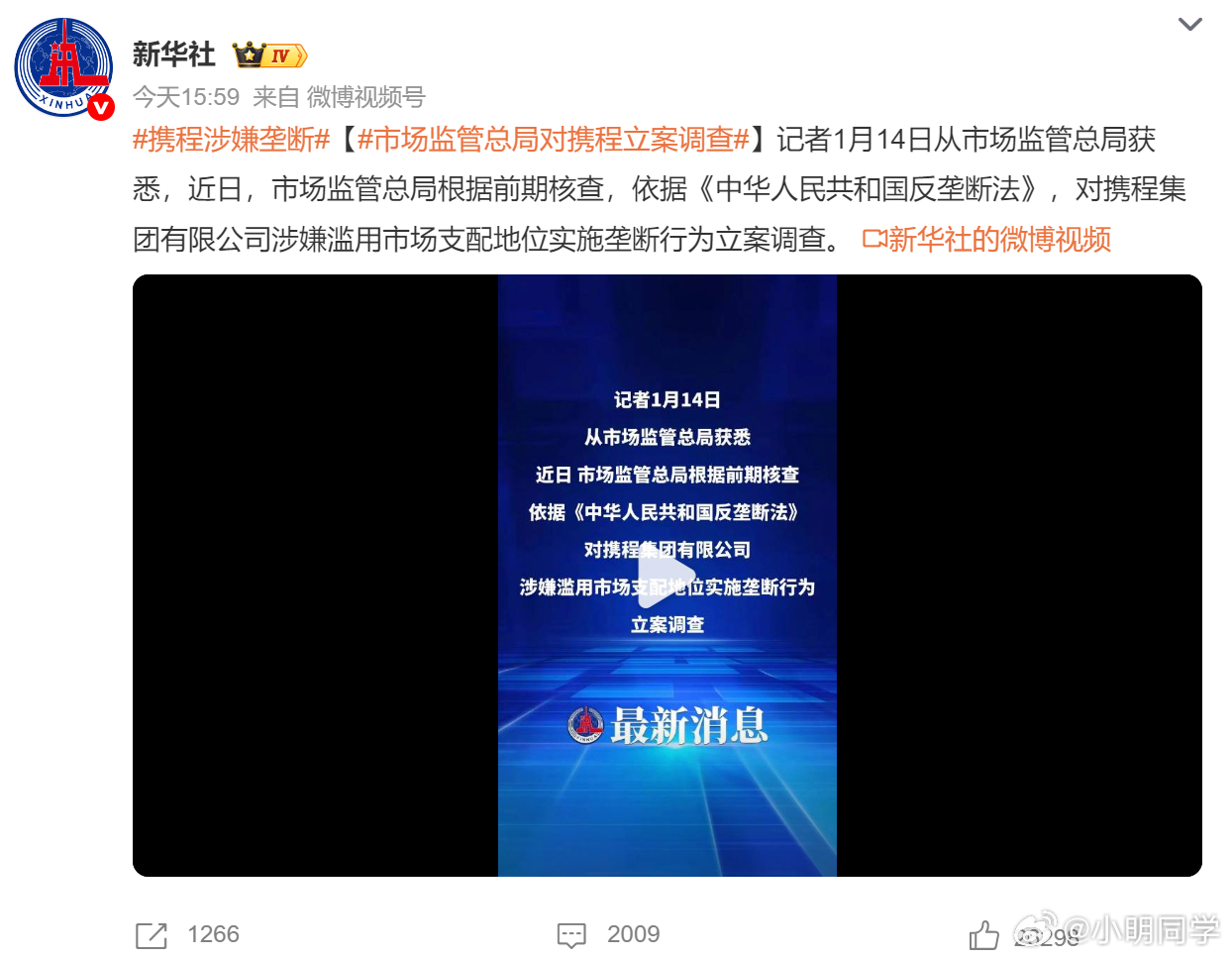 携程涉嫌垄断 新华社消息,市场监管总局根据前期核查,依据《中华人民共和国反垄断法》,对携程集团有限公司涉嫌滥用市场支配地位实施垄断行为立案调查。 看了下我的携程是V2白银贵宾大家平时出去玩会用携程了嘛?还是有其他好用的求推荐。