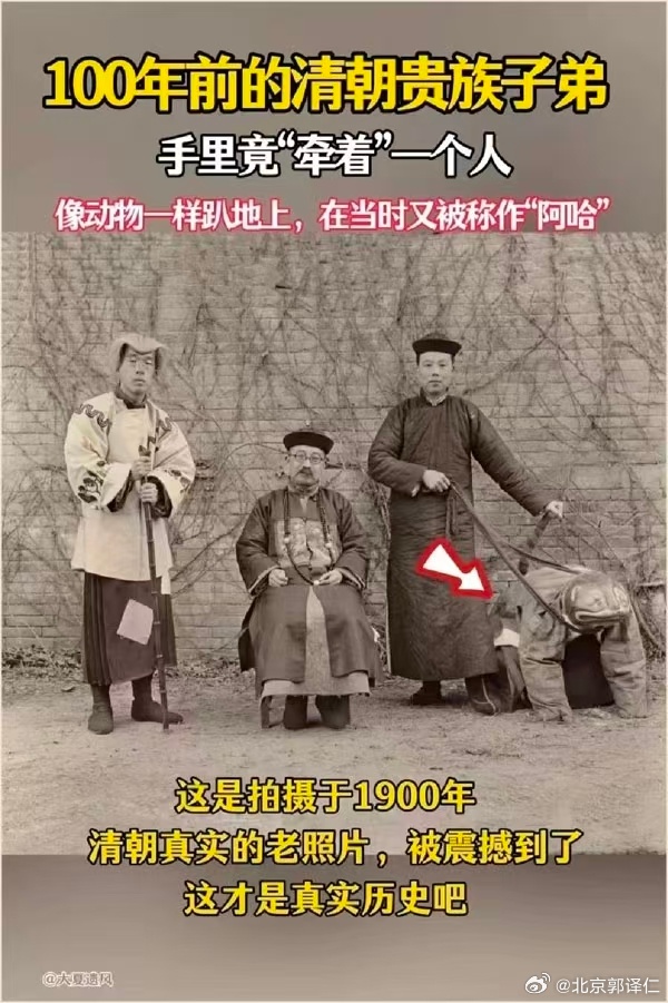 历史影像,1900年到现在也就一百多年,真不敢想象那时的官员竞牵着同类照相……