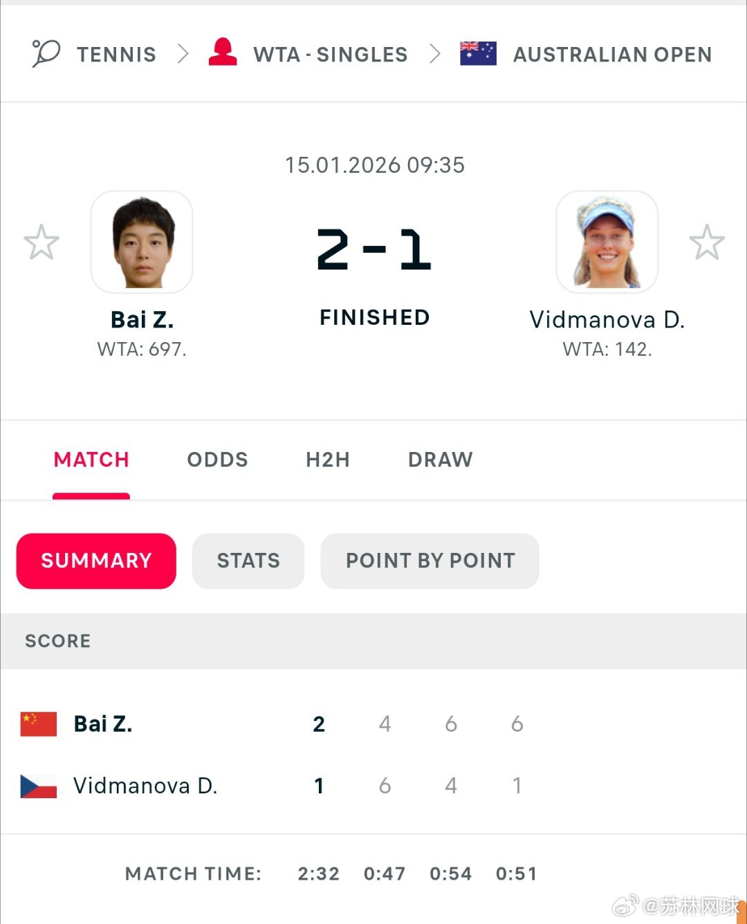 澳网资格赛决胜轮🇨🇳白卓璇46,64,61逆转维迪曼诺娃🇨🇿晋级澳网正赛,🇨🇳朱琳57,46不敌斯塔库西奇🇨🇦无缘正赛,可惜了。接下来,看袁悦的了。澳网2026白卓璇晋级澳网女单正赛