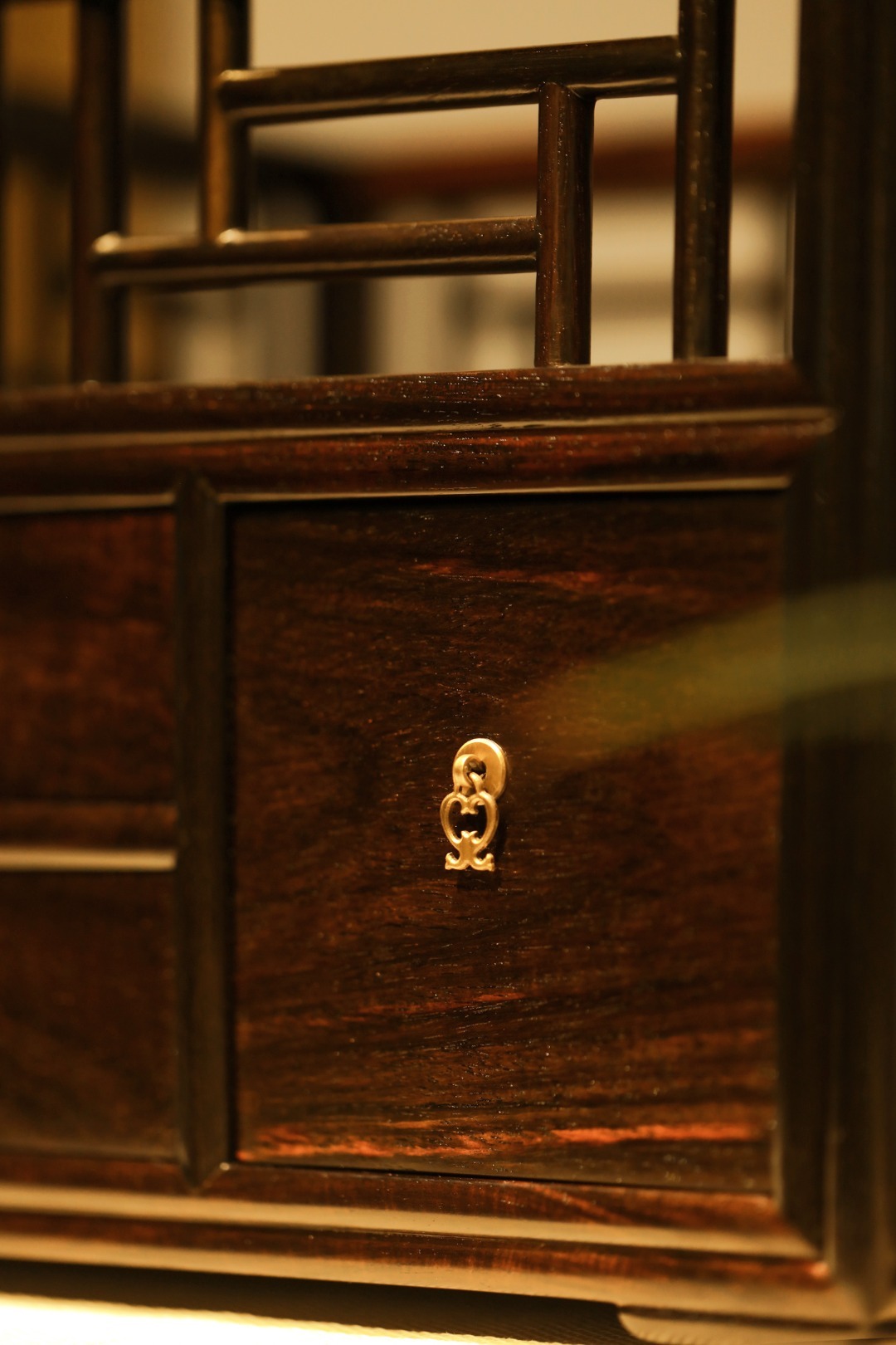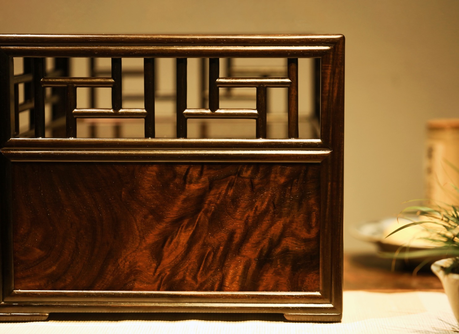 大红酸枝 | 都承盘/茶棚取材黑红老料、榫卯精工,一体同料制,上层围栏、精整疏透