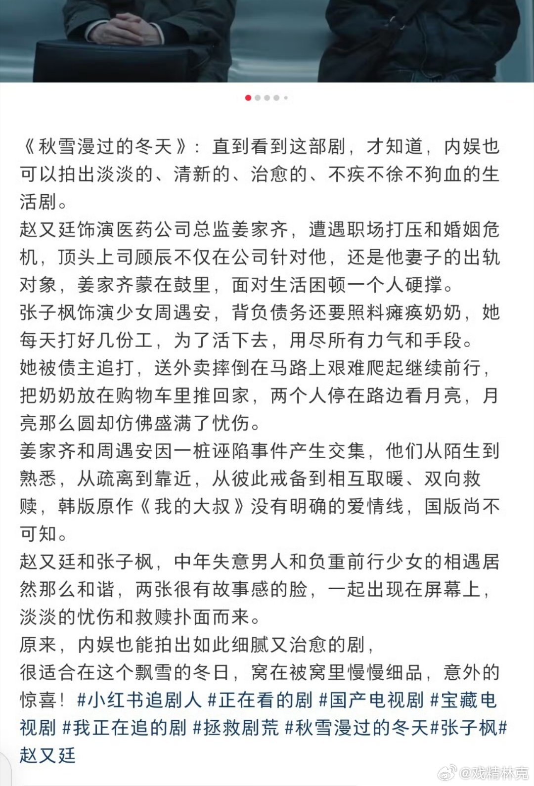 秋雪漫过的冬天的口碑表面是生活的一地鸡毛,却蕴含着极其强大的内核。男女主之间双向治愈的细腻表达很戳人。