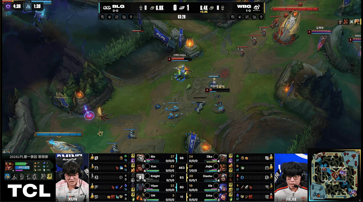 虎扑01月15日讯GAME1:BLG蓝色方;WBG红色方