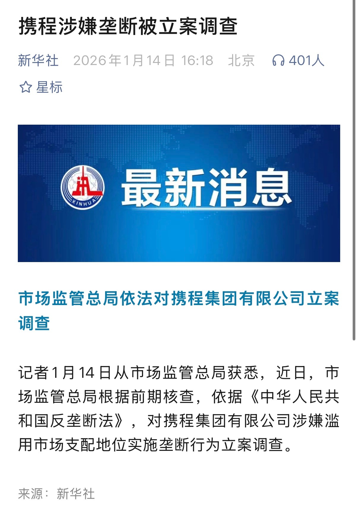 携程,一手遮天的日子到头了?就在刚刚,市场监管总局一纸令下,对携程集团涉嫌“滥