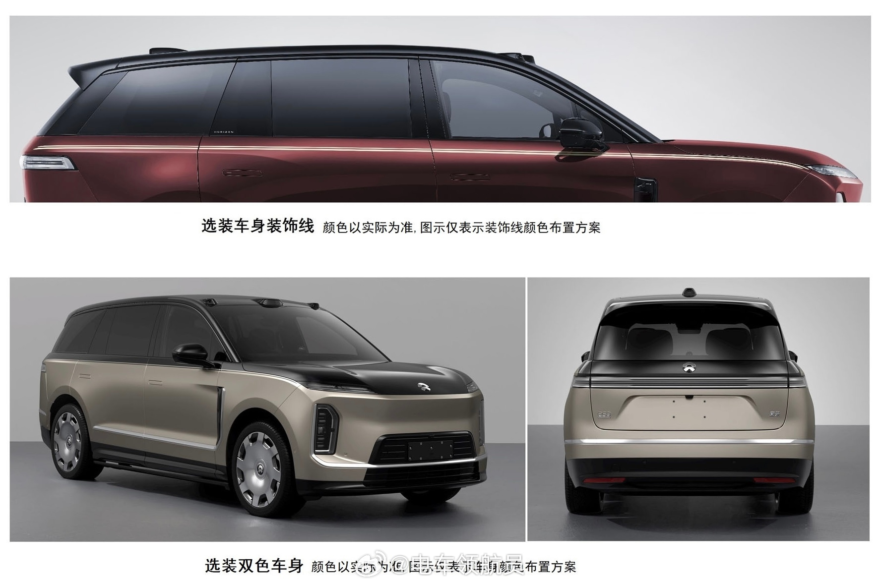 蔚来ES9证件照曝光,相较于ES8尺寸大了一圈长宽高5365×2029×1870mm,轴距3250mm可选双拼色车身,6-7座椅布局可选搭载宁德时代电池,电机功率180kW+340kW