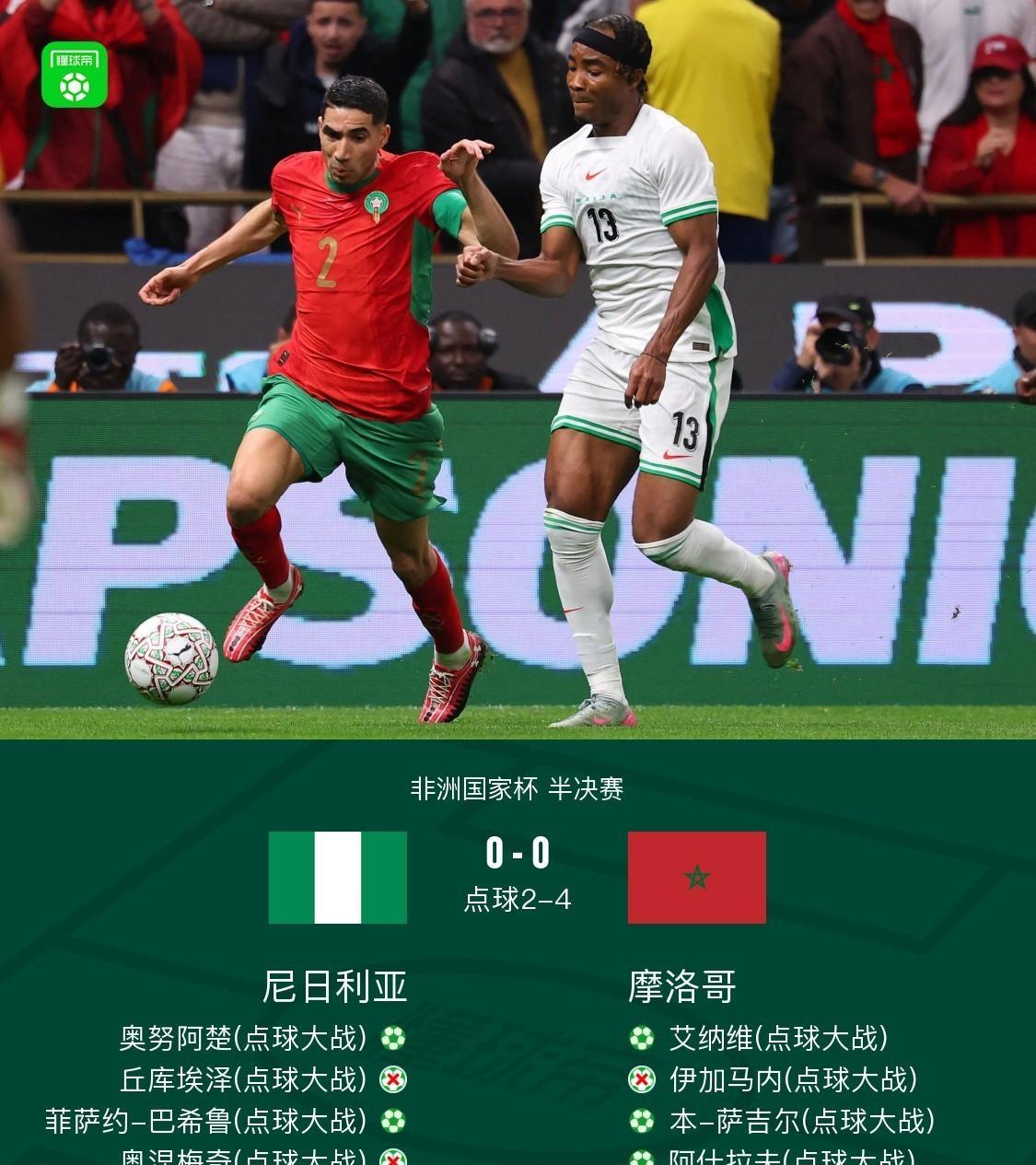 宿命!马内再淘汰萨拉赫,非洲杯决赛出炉,当终场哨响,萨拉赫叉腰站在卢赛尔体育场的草坪上,看台上飘着的塞内加尔国旗像一片流动的绿海。 这已经是5年内,他第三次在关键战中倒在马内脚下了,埃及队的防守其实做得不错,前78分钟里,萨拉赫的几次突破都差点撕开防线。 但足球有时候就是这么不讲道理,第79分钟,马内接队友回做,在禁区弧顶一脚低射,皮球擦着立柱内侧钻入网窝。 镜头扫过埃及替补席,有人把毛巾盖在了头上,另一场半决赛的悬念留到了最后。 摩洛哥和尼日利亚踢了90分钟平局,加时赛也没分出胜负,只能靠点球大战决生死。 摩洛哥门将布努成了全场焦点,他先是扑出了尼日利亚队长的点球,接着又在第三轮将对方前锋的射门按在身下。 当第四轮队友罚进后,布努跪在地上,双手捶着草坪笑,尼日利亚队其实踢得很顽强。 他们今年连世界杯都没进,但非洲杯上一路磕磕绊绊走到半决赛,常规时间最后10分钟,他们甚至压着摩洛哥打,可惜前锋的单刀被布努用腿挡了出去。 离场时,尼日利亚球员互相拍着肩膀,没人哭,只是走得很慢,塞内加尔和摩洛哥的决赛对阵,有点像非洲足球的新旧对话。 塞内加尔是上届冠军,队里有马内这样的顶级前锋,淘汰赛一路没遇到点球大战,靠的是稳定。 摩洛哥则是东道主,布努的神扑让他们底气更足,加上主场球迷的助威,说不定能创造惊喜。 看了这两场半决赛,我觉得顶级赛事里,真正决定胜负的往往不是纸面实力,马内那脚射门之前,塞内加尔的控球率其实比埃及还低;布努扑点前,摩洛哥的射正次数也没占优。 但关键时刻,总有人能站出来,把机会变成结果,马内进球后指向角旗区的手势,和布努扑出第二个点球时咧嘴的表情,成了这届非洲杯半决赛最鲜活的注脚。 一支要卫冕,一支想在本土圆梦,塞内加尔和摩洛哥的决赛,或许比半决赛更有看头毕竟能走到这里的球队,都懂怎么把瞬间的闪光,变成最后的胜利。