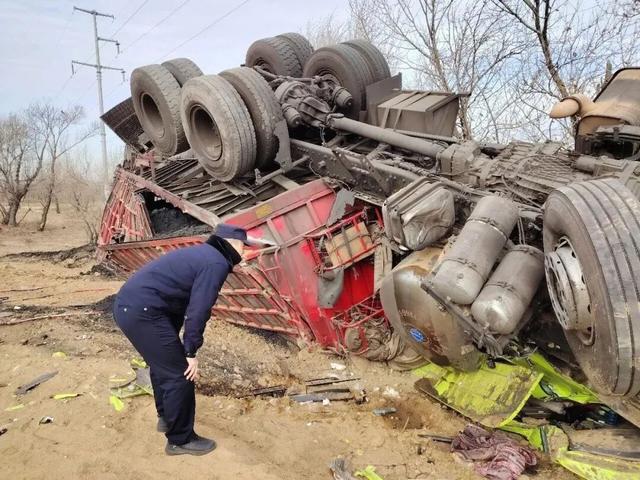 “警察同志,快!拉煤大货车翻进沟里了,