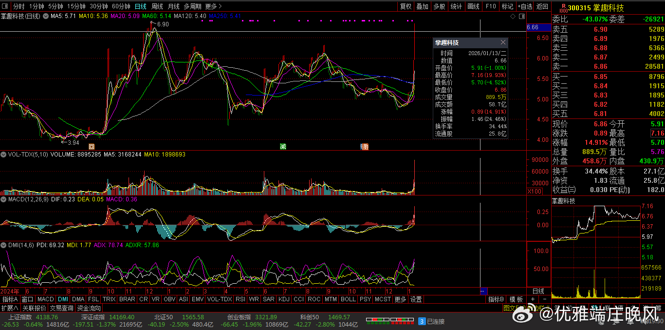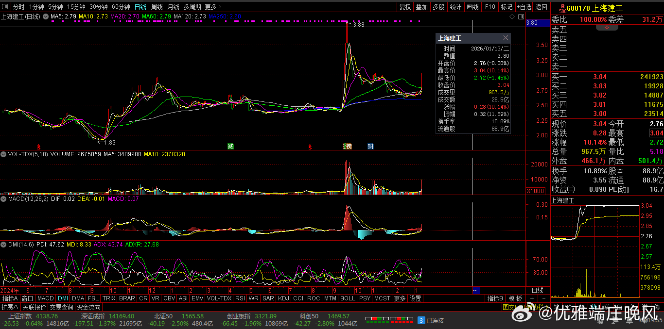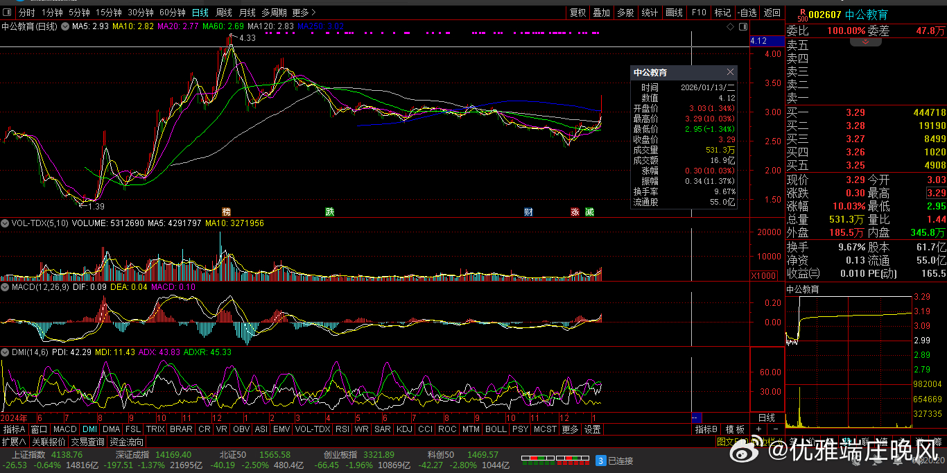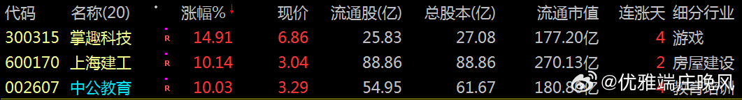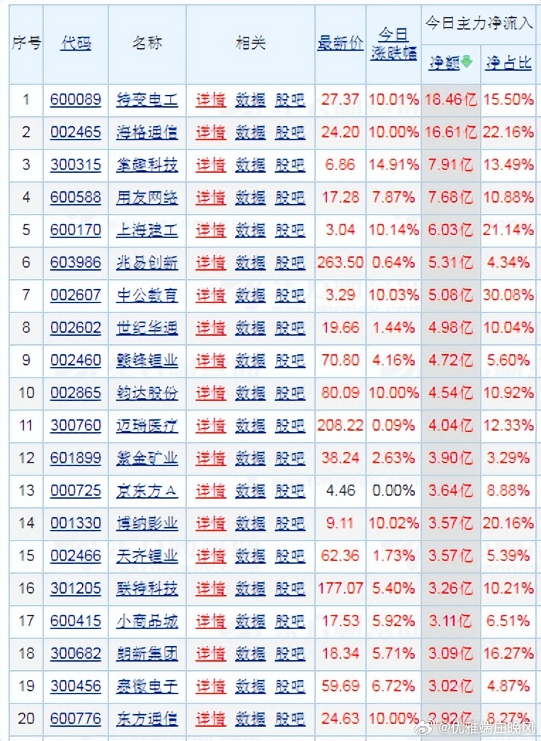 【财富晚茶】潜龙浮出水面:01.13主力资金:净流入前20股票导语:作者系《网易号》优质财经领域创作者。曾经原创作者和知名网易号旅游领域创作者。大跨度行业等的写作,颇受网友喜爱。作品发表于2026.01.13.23:58 优雅端庄晚风。【内容概述】今日股市收评:主题是:【财富晚茶】潜龙浮出水面:01.13主力资金:净流入前20股票。主旋律:今日主力资金:净流入前20股。主力投资潜龙浮出:越战越勇叠创新高。一、视野最新:主力资金:前20强股300315 掌趣科技 600170 上海建工 002607 中公教育1、风口行业:最佳公司第一、300315 掌趣科技靓丽底牌:全球化的游戏公司和细分品类的领导者。第二、600170 上海建工靓丽底牌:中国建筑行业先行者和排排头兵。第三、002607 中公教育靓丽底牌:国内领先的职业就业培训综合服务头部提供商。二、视野背景:资金为王:前20强股复盘潜龙:浮出水面追踪资金:沪深北市:净流入股票。主要集中:光伏、AI、军工、基建和新能源等板块。视野反映:市场对高景气度成长领域的持续关注。1、特变电工净流入:18.46亿元核心逻辑:全球信赖的能源服务商。早盘点评:输变电与新能源运营协同,电网升级与绿电项目需求强劲。2、海格通信净流入:16.61亿元核心逻辑:无线通信导航领域最优秀现代企业。早盘点评:军工通信设备需求激增,订单储备充足。3、掌趣科技净流入:7.91亿元核心逻辑:全球化的游戏公司和细分品类的领导者。早盘点评:游戏行业复苏,爆款产品带动资金流入。4、用友网络净流入:7.68亿元核心逻辑:亚太地区最大管理软件供应商。早盘点评:企业数字化转型加速,ERP与云服务需求增长。5、上海建工净流入:6.03亿元核心逻辑:中国建筑行业先行者和排排头兵。早盘点评:基建投资回暖,建筑行业订单回升。6、兆易创新净流入:5.31亿元核心逻辑:全球卓越的科技公司。早盘点评:存储芯片国产替代加速,技术突破带动资金关注。7、中公教育净流入:5.08亿元核心逻辑:国内领先的职业就业培训综合服务头部提供商。早盘点评:职业教育政策支持,培训需求增长。8、世纪华通净流入:4.98亿元核心逻辑:数字科技的龙头企业。早盘点评:游戏与云服务协同效应显著。9、赣锋锂业净流入:4.72亿元核心逻辑:国内锂系列产品品种最齐全产品加工链最长工艺技术最全面专业头部生产商。早盘点评:锂电池需求旺盛,技术壁垒高。10、钧达股份净流入:4.54亿元核心逻辑:世界一流光伏科技公司。早盘点评:光伏组件产能扩张,绿电转型加速。11、迈瑞医疗净流入:4.04亿元核心逻辑:中国医疗设备优秀民族品牌和头部企业。早盘点评:医疗器械国产替代,高端产品需求增长。12、紫金矿业净流入:3.9亿元核心逻辑:全球最重要的锂生产商。早盘点评:黄金价格走强,资源类资产受青睐。13、京东方A净流入:3.64亿元核心逻辑:全球半导体显示领域领军企业及物联网领域全球创新型企业。早盘点评:显示面板行业复苏,技术领先。14、博纳影业净流入:3.57亿元核心逻辑:国内首家从事电影发行业务的民营企业。早盘点评:影视行业回暖,票房表现强劲。15、天齐锂业净流入:3.57亿元核心逻辑:锂为核心的有全球影响力的能源变革推动者。早盘点评:锂资源供应紧张,价格走强。16、小商品城净流入:3.11亿元核心逻辑:世界“小商品之都”。早盘点评:跨境电商与贸易便利化政策推动。17、东方通信净流入:2.92亿元核心逻辑:集硬件设备、软件、服务为一体的整体解决方头部提供商。早盘点评:5G通信设备需求增长。18、美湖股份净流入:2.7亿元核心逻辑:中国发动机泵类生产领先企业。早盘点评:家居消费复苏,品牌效应显著。19、金桥信息净流入:2.24亿元核心逻辑:数字化科技的行业领先者。早盘点评:智慧城市与政务信息化项目落地。20、新华保险净流入:2.12亿元核心逻辑:全国大型的寿险公司。早盘点评:保险行业回暖,寿险需求回升。三、今日潮涌:板块筹码:跳跃龙头1、核心大涨:政策影响今日主力:资金净流入主要集中在光伏、AI、军工、基建和新能源等板块,反映出市场对高景气度成长领域的持续关注。2、资金流入:风口板块第一、光伏板块核心方向光伏板块:作为资金流入的核心方向。代表个股:特变电工:资金净流入18.46亿元,录得涨停。钧达股份:资金净流入4.54亿元,录得涨停。显示行业:政策支持及产业链景气度提升的积极信号。第二、算力板块资金潮涌AI应用与算力板块:资金显著流入海格通信(净流入16.61亿元)、掌趣科技(净流入7.91亿元)和用友网络(净流入7.68亿元),受益于技术迭代和商业化预期,部分个股出现20CM涨停。第三、军工游戏资金青睐军工与高端制造:除海格通信外,世纪华通(净流入4.98亿元)等AI游戏与算力布局企业也获得资金青睐。第四、增长政策基建电网基建与电网设备:上海建工(净流入6.03亿元)作为基建龙头涨停,反映稳增长政策对相关板块的支撑。第五、新能源与锂矿活跃新能源与资源:赣锋锂业(净流入4.72亿元)等锂矿龙头因周期复苏预期获资金关注,同时紫金矿业(沪市净流入3.9亿元)和国电南自(净流入9844.20万元)在资源与电力自动化领域表现活跃。五:优质网易:抛砖引玉:财经作者投资投机迷茫之中:给予尽可能有帮助:资本市场风险自负。(优雅端庄晚风《网易号》优质财经领域创作者和原创作者; 违者必究)