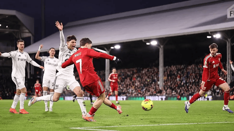 比赛进行到第57分钟,利物浦在克拉文农场球场0-1落后,维尔茨接康纳-布拉德利的传球破门得分。助理裁判立即举旗示意这位德国国脚越位。