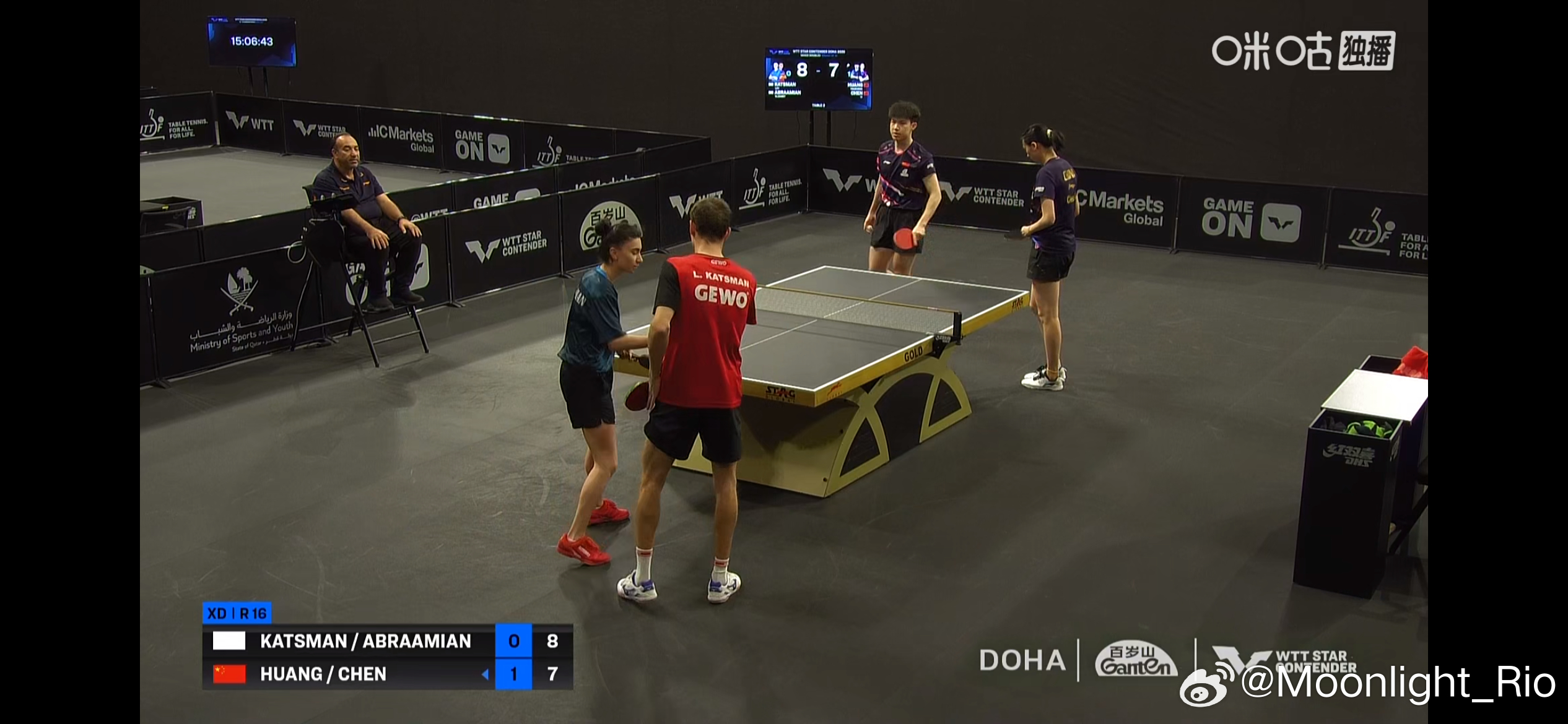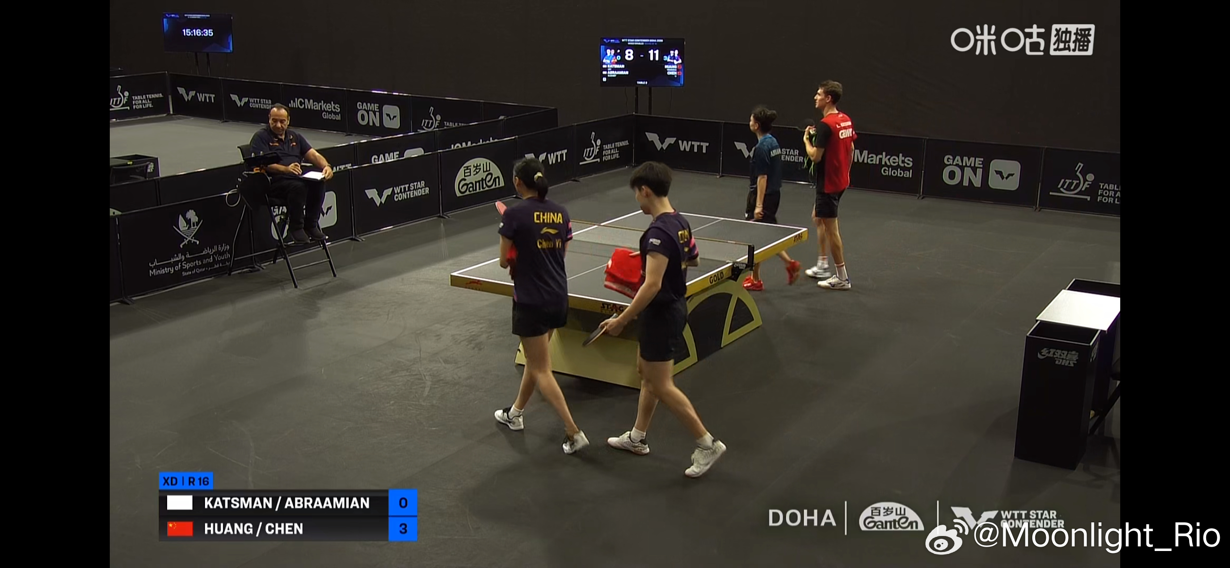 WTT球星挑战赛多哈站2026混双1/8决赛:🇨🇳黄友政/陈熠3比0卡兹曼/阿布拉米安(AIN)(11-7,11-8,11-8)