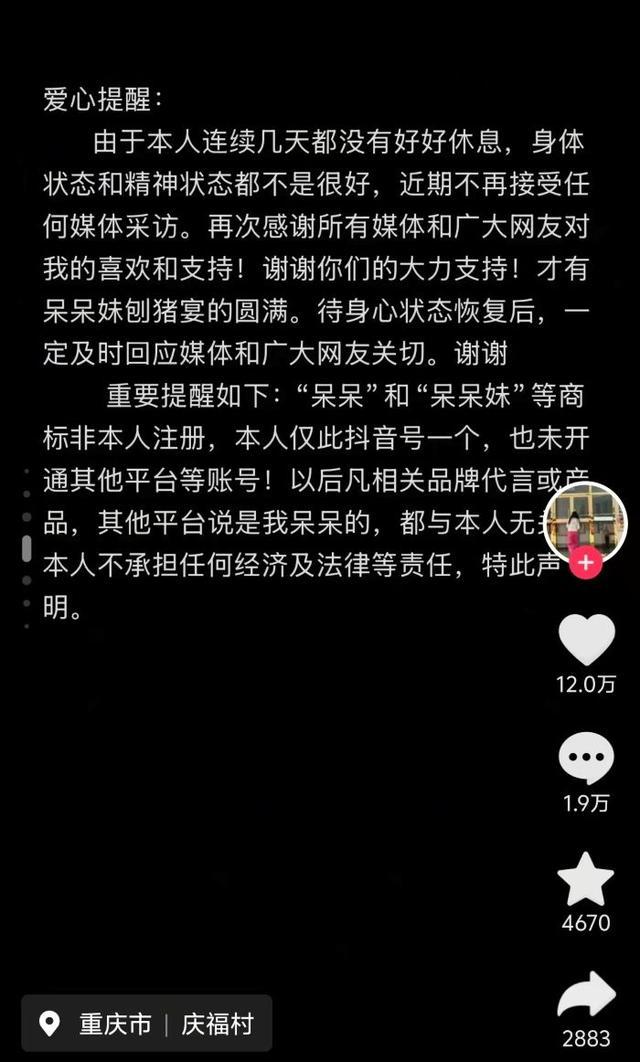 记者了解到,事件始于1月9日凌晨,重庆合川姑娘“呆呆”在社交平台发布了一条质朴无华的视频。视频中,她面对镜头,言语间带着几分为家人分担的忧心与直率的乡土气息:“1月11日我家要杀两头猪,有人来帮我按猪吗?请你吃刨猪汤!”她担心年迈的父亲独自应付不来这项传统的农家大事。这条没有任何专业剪辑、背景甚至略显嘈杂的视频,起初像一颗被随意投入平静湖面的小石子,并未激起太多波澜。