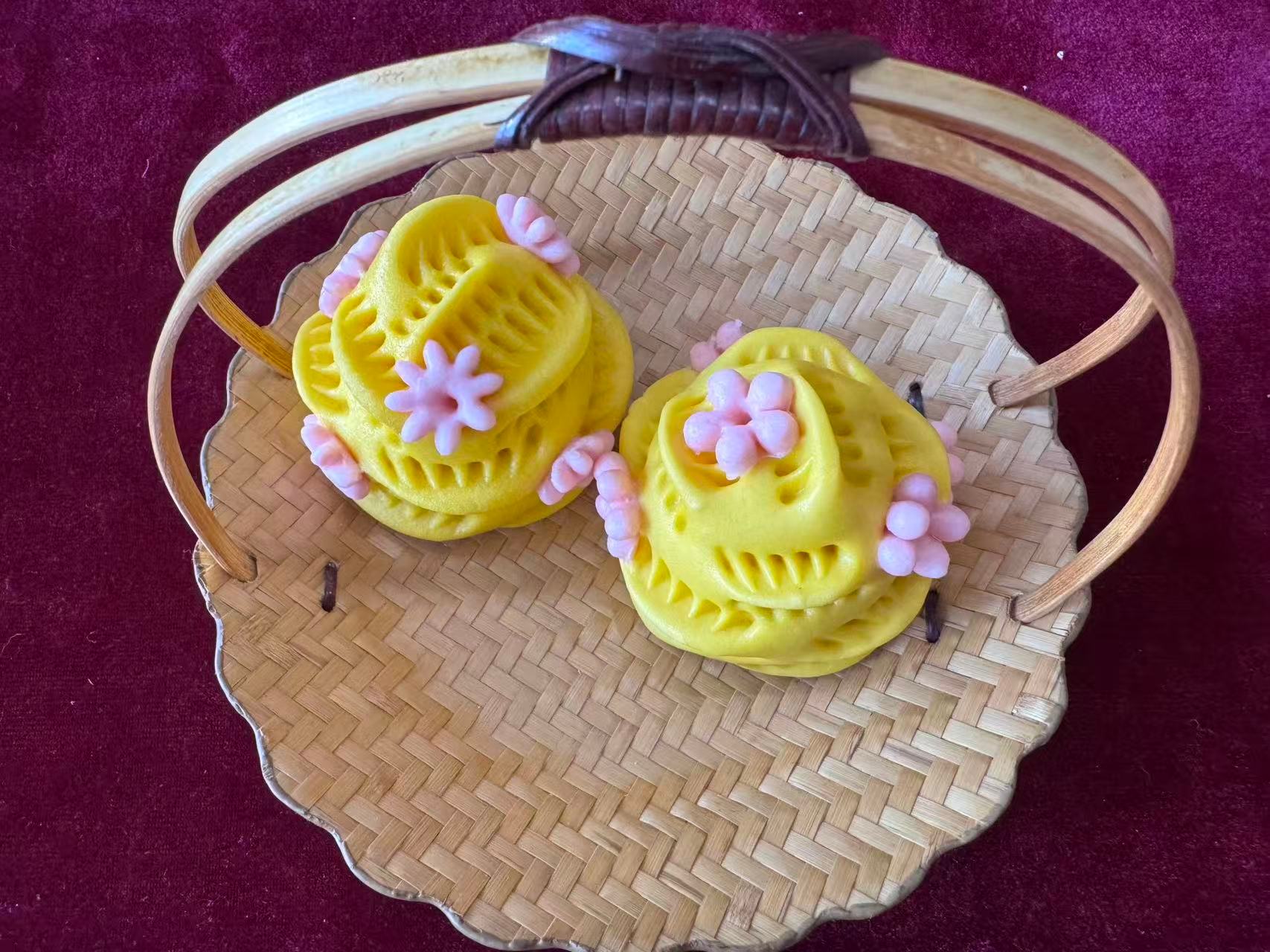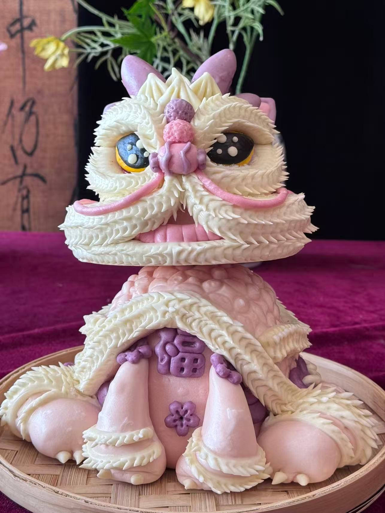 冬游齐鲁欢乐过年菏泽牡丹花花饽饽的指尖魔法!菏泽牡丹花花饽饽的诞生,藏着“发、揉、塑、蒸、点”五步秘诀。发酵好的面团反复揉搓至光滑无孔,是饽饽不开裂、口感细腻的关键。天然果蔬汁调色超治愈:菠菜汁染翠、南瓜泥酿黄、火龙果汁晕粉、紫薯泥揉紫,每一抹色都透着清新。塑形全靠巧思,剪刀、梳子、筷子齐上阵,搓捻剪压间,一朵朵鲜活牡丹跃然眼前。二次醒发后大火足气蒸熟,饽饽“开花”膨胀,饱满生动,咬一口满是麦香与匠心~遇见美好