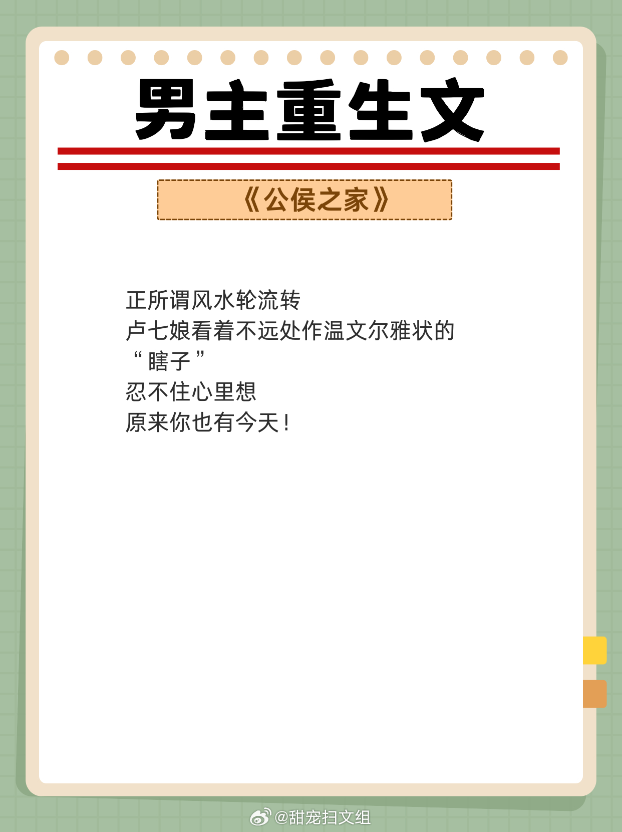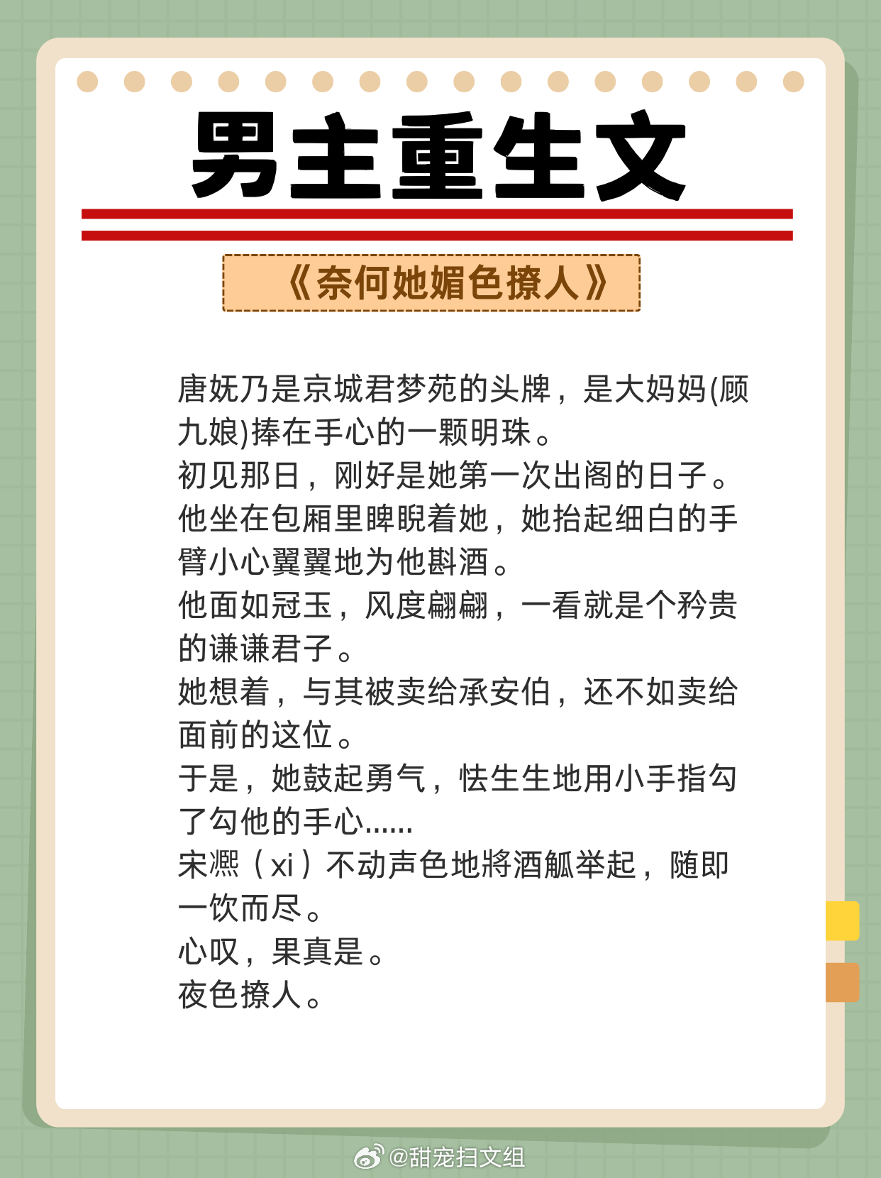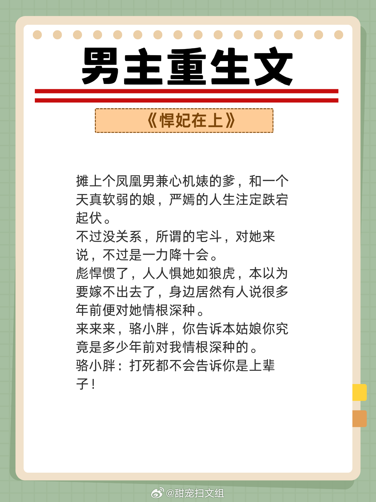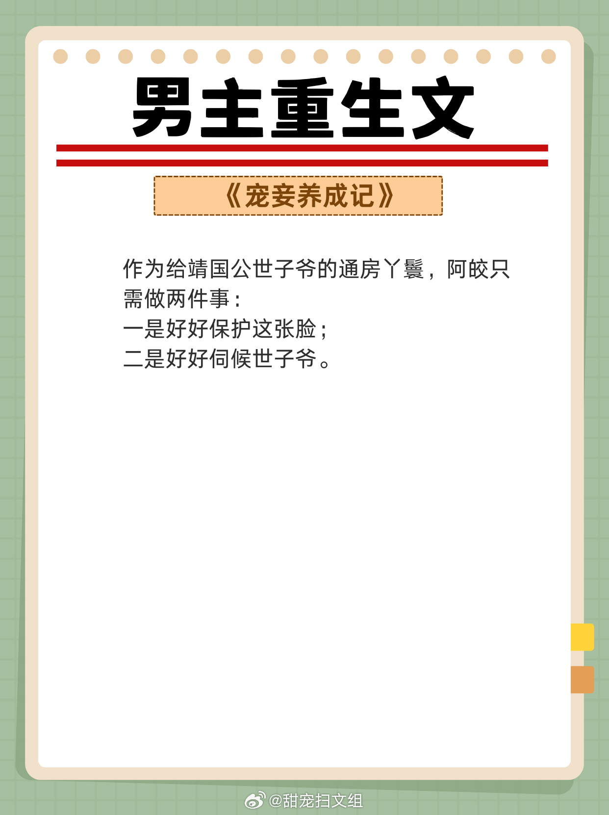 男主重生文,重活一世,强势宠妻,弥补遗憾!两世姻缘,前世怨侣,今生美满!!1、《从萤》 作者:木秋池2、《春江花月》 作者:蓬莱客3、《吾妻甚美》 作者:若然晴空4、《公侯之家》 作者:绣锦5、《悍妃在上》 作者:假面的盛宴6、《奈何她媚色撩人》 作者:发达的泪腺7、《夺娇记》 作者:美人乔8、《宠妾养成记》 作者:抹茶曲奇9、《强宠之下,必有娇妻》 作者:素衣渡江网文界的诸神之战 越读越上头的小说神作