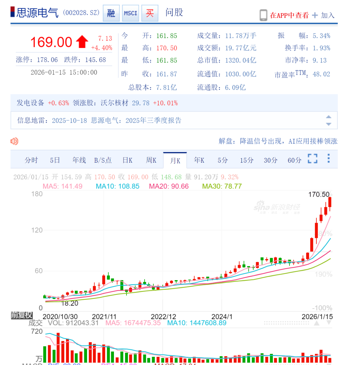 思源电气的2025前三季度业绩:营业总收入138.3亿元,同比增长32.9%,归母净利润21.9亿元,同比增加46.9%,业绩实现较快增长。2025年公司新增合同订单目标为268亿元(不含税),同比增长25%;2025年营业收入目标为185亿元,同比增长20%,预计公司有望高水平完成年度目标。