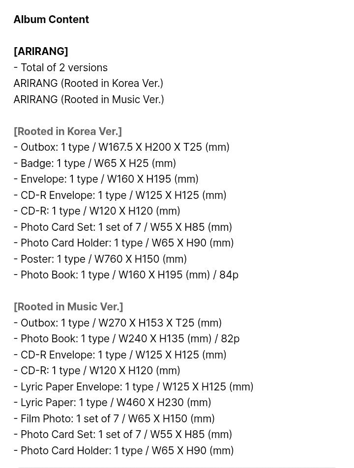 BTS正规5辑《ARIRANG》预购指南+专辑配置公开💿