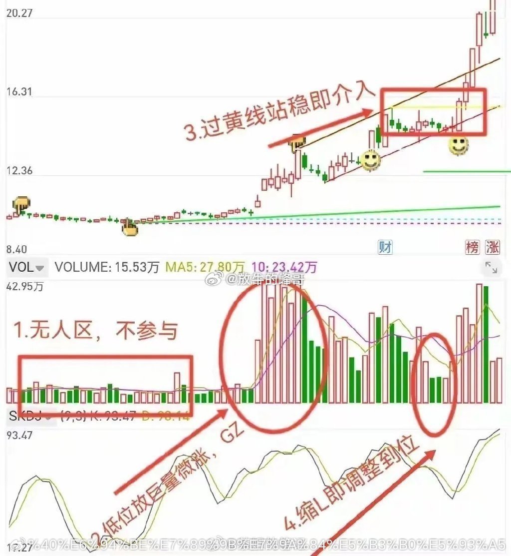 量价关系:股市运行的底层密码价与量如舟与水,核心在于量价匹配、阶段适配,吃透三大共振信号,即可精准把握主升浪节奏。一、价平量增:主升浪前筹码收集期股价在低位平台或突破前整理区横盘,波动<5%,成交量较前期萎缩阶段日均增30%以上且温和递增。价平是主力隐藏吸筹意图,避免散户跟风;量增是主力持续买入消化浮筹,暗中完成筹码集中,为拉升储备弹药,是主升浪启动前奏。关键看温和持续放量,忌突然爆量,横盘2-4周越久,筹码越足,后续爆发力越强。二、价升量增:主升浪加速确认期股价突破盘整持续上涨,单日涨3%-5%且连阳,成交量随价同步放大,上涨量能较前一日增20%以上、不低于近期均量1.2倍。价升是趋势显现,量增是资金共识,主力拉升+场外跟风形成多头合力,如火箭燃料持续供给,是主升浪加速明确信号。健康标准是量价匹配,涨5%对应量增50%以上,规避价升量缩(动力不足)、量增价滞(疑似出货)。三、价升量缩:主升浪风险预警期股价续创新高,成交量较前期上涨阶段缩30%以上且连2日未放大,出现价新高、量未新高。价升是主力少量资金维持表面强势,量缩是跟风资金不足、散户追涨意愿下降,上涨失群众基础,主升浪动力衰减,大概率进入末端或回调。应对不盲目追高,看量能补量:续涨放量可持有,缩量滞涨需减仓止盈,警惕主力出货。量价核心:阶段适配大于绝对好坏1. 吸筹阶段(主升前):价平量增,量能先行蓄动能2. 拉升阶段(主升中):价升量增,量价同步保延续3. 尾声阶段(主升后):警惕价升量缩,量能掉队藏风险脱离阶段谈量价易踩误区:吸筹期缩量是正常蛰伏,拉升期缩量才是风险;出货期放量是危险派发,吸筹期放量是积极信号。吃透量价阶段适配性,看穿资金真实意图,主升浪启动精准上车,趋势乏力及时离场,杜绝只看价格、忽略量能的盲目操作。