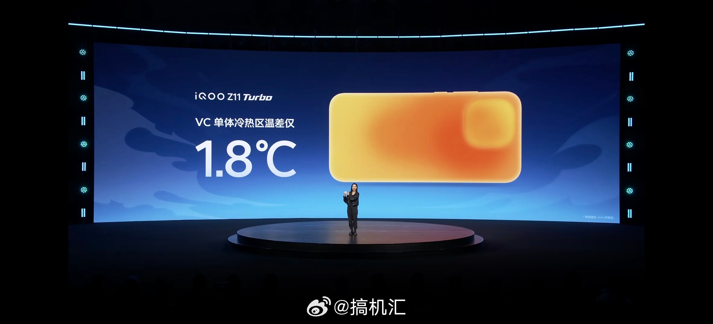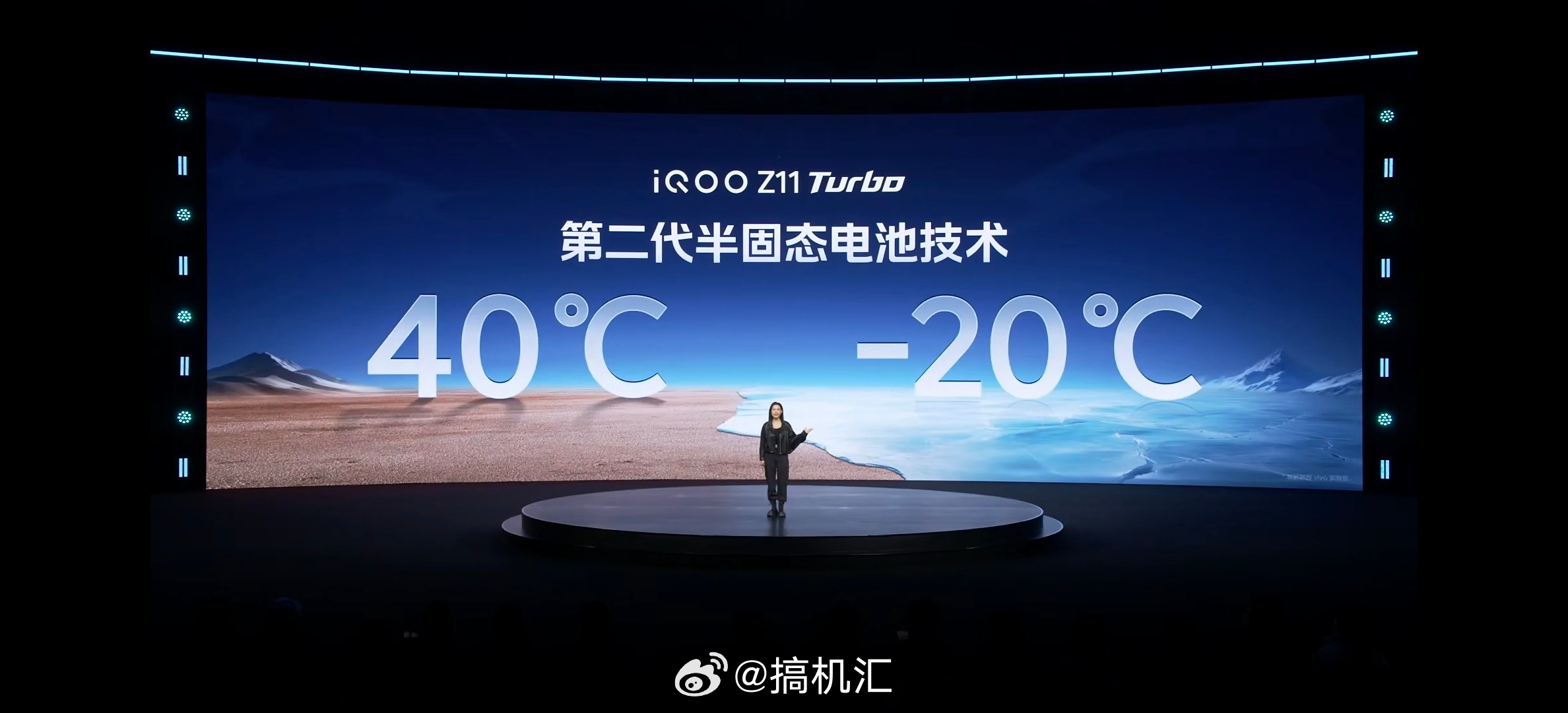 iQOO Z11 Turbo 配备一块7600mAh超薄蓝海大电池,第二代半固态技术零下20℃~40℃电池活性依然在线,100W闪充,低电量疾速回血。全场景直驱供电2.0边充边玩不发烫。冰穹双网散热CPU至高直降15℃,机身表面温差控制在1.8℃以内,散热超均匀!