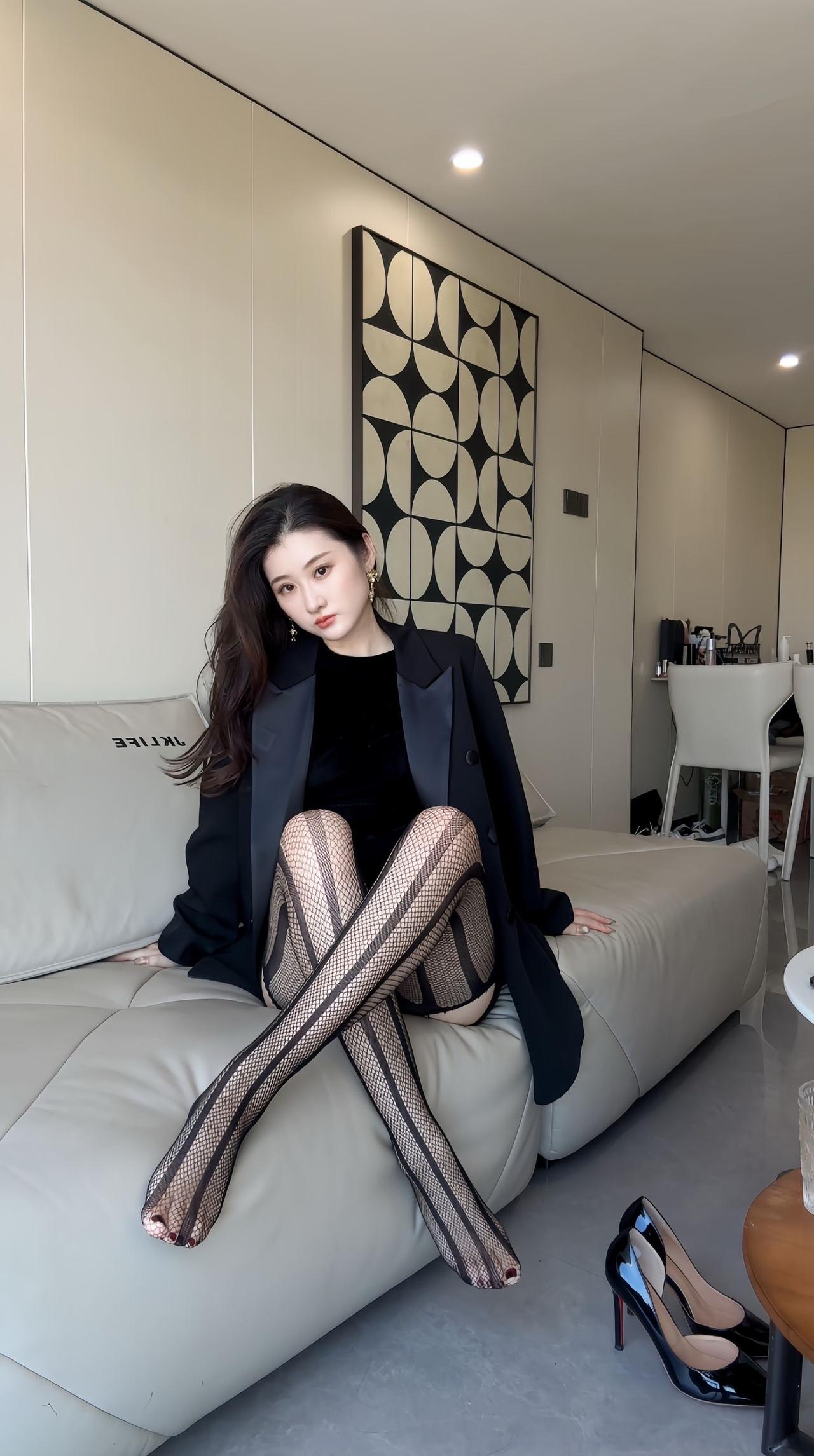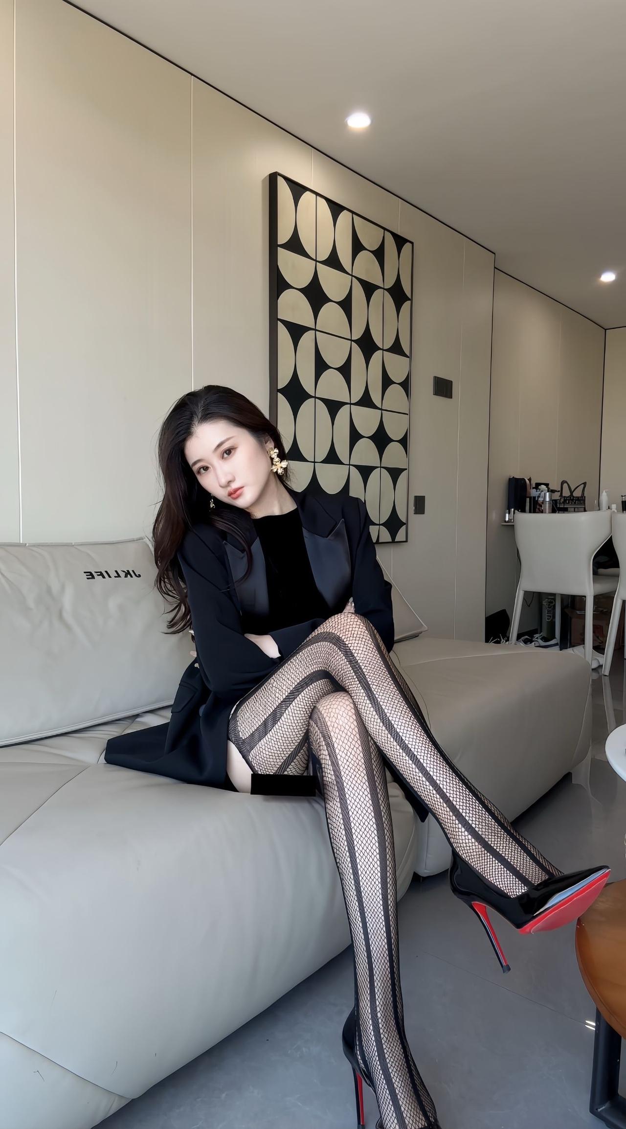 优雅黑裙搭配网袜,尽显都市女性魅力!