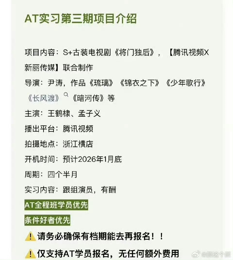 腾讯古装剧将门独后将开机网传《将门独后》1月底开机~主演:王鹤棣、孟子义、杨仕泽、乔振宇、郭碧婷等