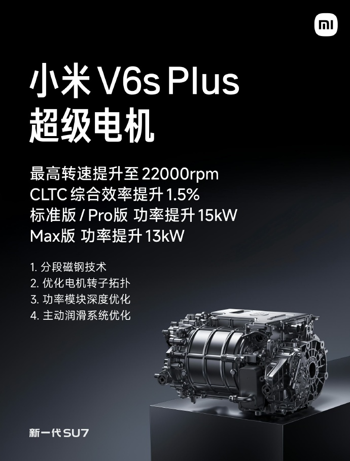 雷军直播 汇总一下这次直播,新款小米SU7所有爆料:1.SU7这次轮毂一共6款,标配19寸钻石轮毂,20寸分锋刃、梅花和米字型轮毂,21寸则是锻造树杈轮毂和双层锻造梅花轮毂。 2.新款SU7会有9种车漆颜色,目前除了卡布里蓝之外,还有璀璨洋红、霞光紫、雅灰、珍珠白、曜石黑、流金粉,最后2款目前还在保密,发布会之前会公布。3.小米超级电机V6S Plus相较于小米超级电机V6S,转速从21000转提升至22000转,CLTC综合效率提升1.5%,其中标准版和Pro版本的功率提升15kW,Max功率提升13kW。4.新款小米SU7 Max给了布雷博四活塞+低金属刹车片 5.小米开启HAD辅助驾驶门槛1000公里,大家这个呼声小米已经注意到了,下次OTA之后,小米会降低公里数门槛。