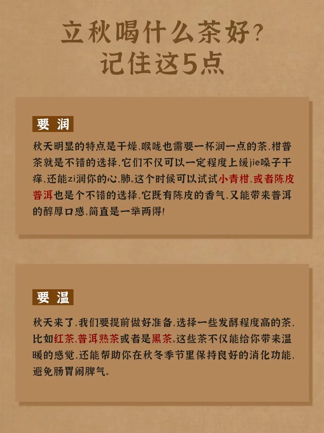 有些朋友可能还想着喝点生茶或者白茶来清热解暑,但是立秋了,咱们可以适当选择一些老生茶或老白茶。