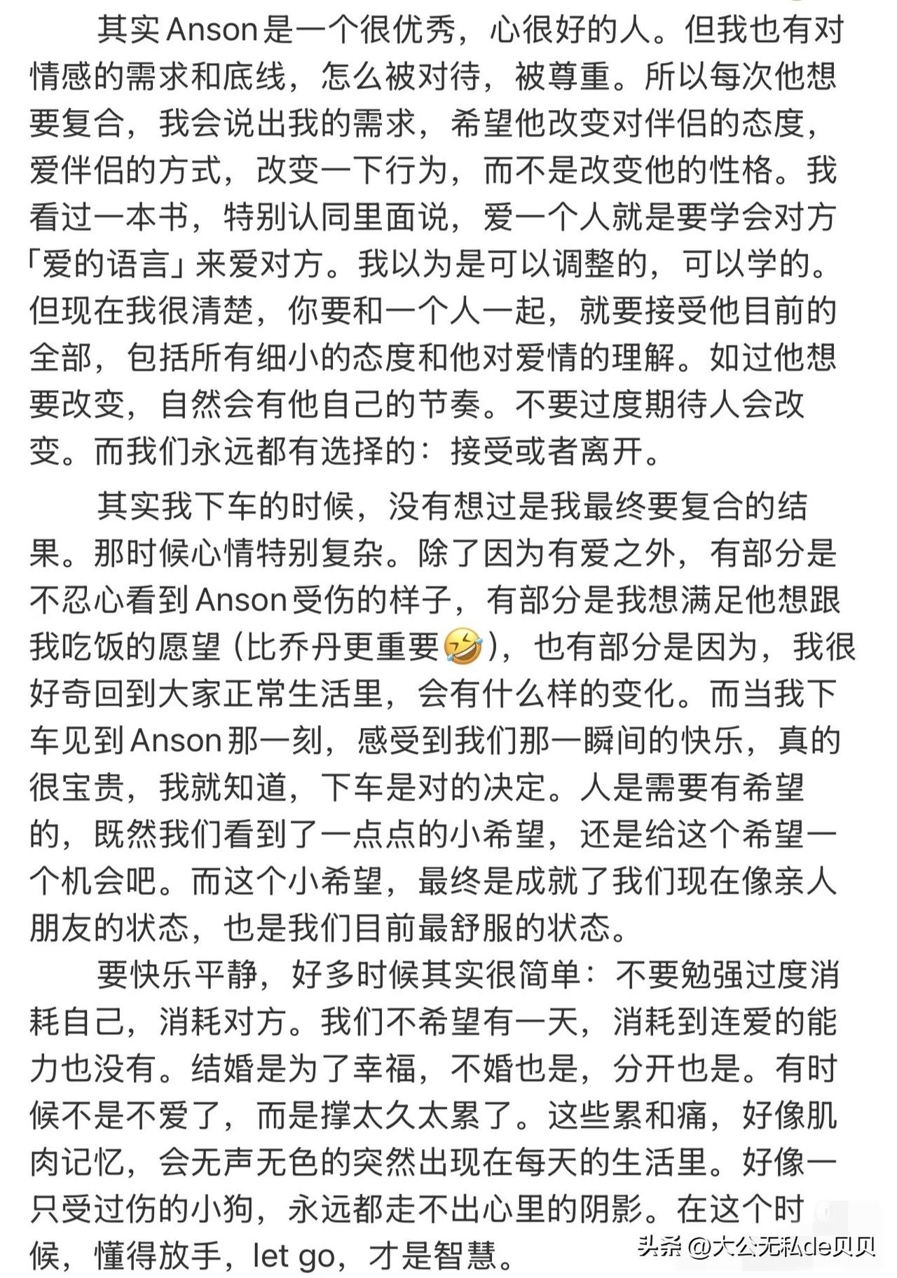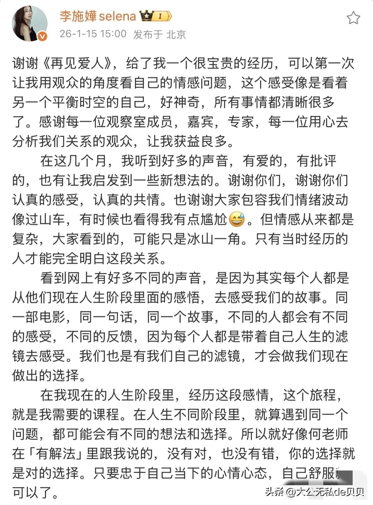 今年的再见爱人再抓马了! 节目里两对嘉宾都下车了,节目外却🈶两对嘉宾be了! 一对是李施嬅和车崇健。 本来大家已经接受了她俩复合的事实,结果不到一星期,又发文说还是选择分开了? 感觉李施嬅丝毫不在乎观众的情绪,也不在乎观察室嘉宾的意见,完全是随着自己性子在做决定。 另一对是所有镜头被一剪没的邓莎和路行。 从邓莎的发文来看,应该是离了。第一期预告里两人拥抱的画面,估计就是决定离婚的goodbye hug吧。 难怪何美延最后下车前那么纠结呢! 估计是看到姐姐们都分开了,羡慕嫉妒,但自己孩子太小,目前只能继续在婚姻里忍着。[捂脸]