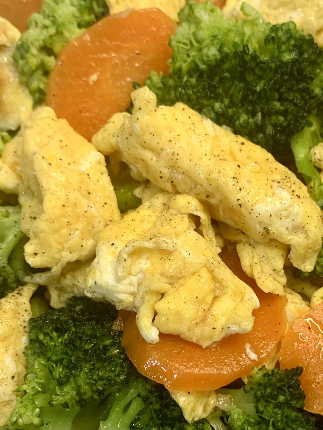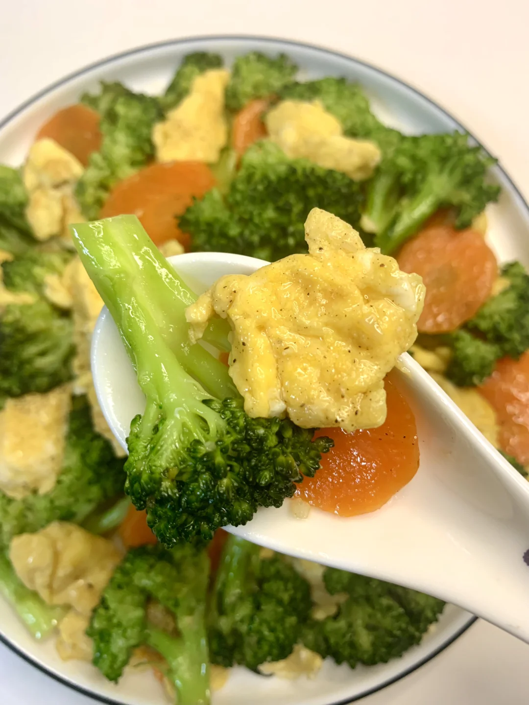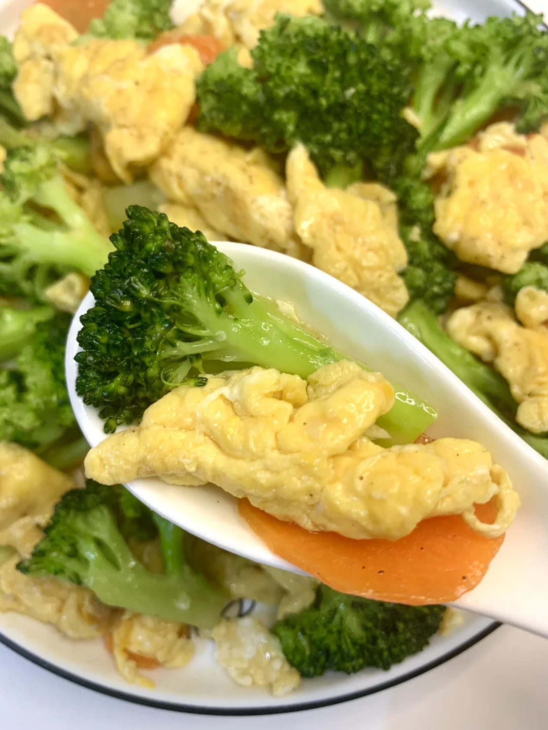 [赞R]今日分享这份~西兰花胡萝卜炒鸡蛋,鲜美可口,太好吃了!低卡高蛋白,好吃不胖~做法间单,快学做起来吧~ [彩虹R]食材:西兰花 胡萝卜 鸡蛋 [种草R]做法:如图所示~