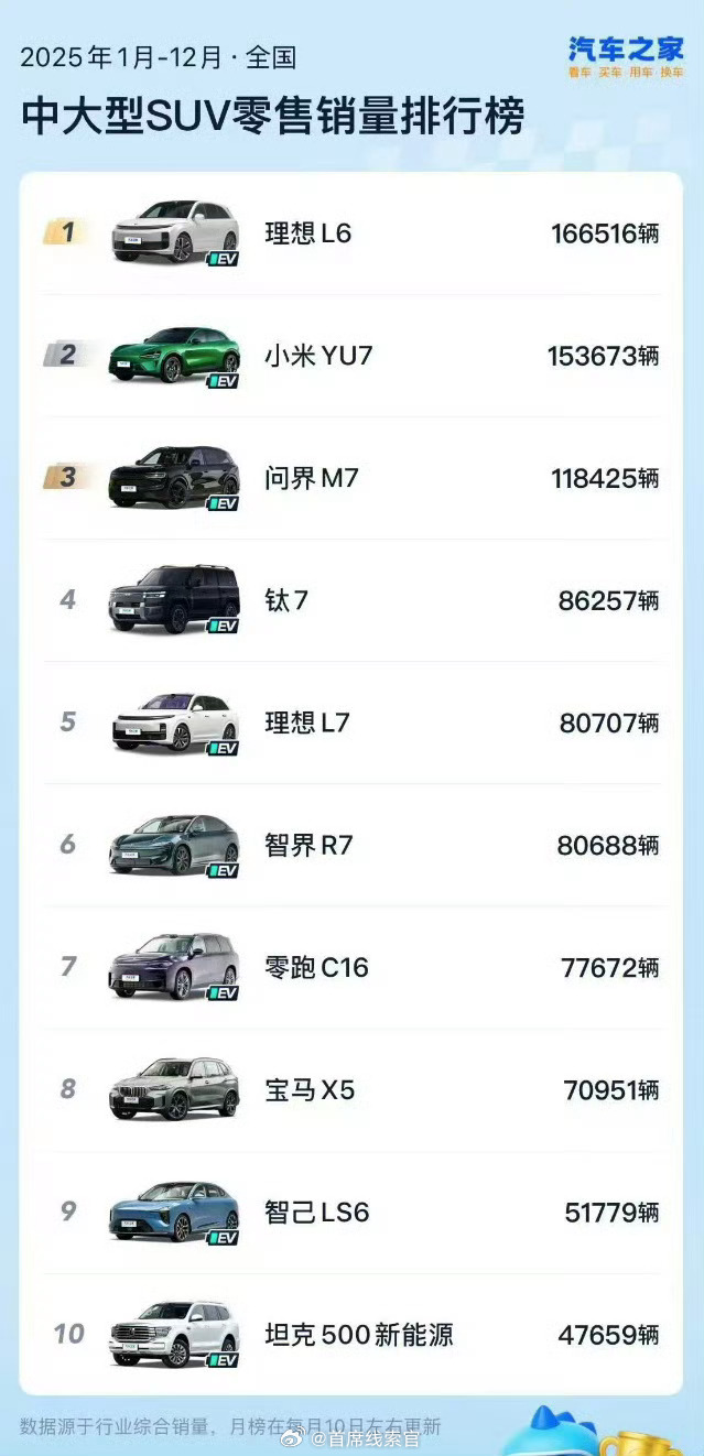 理想 L6 累计交付刚刚突破 36 万辆。同时,也是 2025 年中大型 SUV