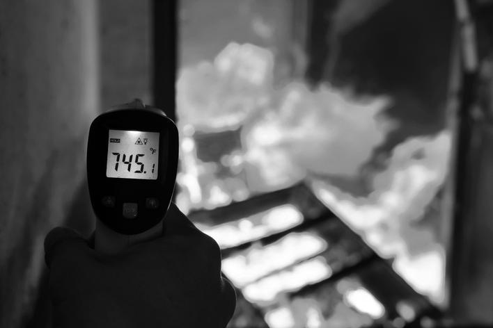此次实验模拟真实居家火灾场景,精准还原火灾发生、蔓延的全过程。工作人员在废弃自建房里安装符合国家标准的甲级防火门和普通木门,室内摆放沙发等常见木质家具。为精准捕捉数据差异,消防人员在两个门口设置了测温仪和烟气浓度检测仪,全程同步记录数据变化。