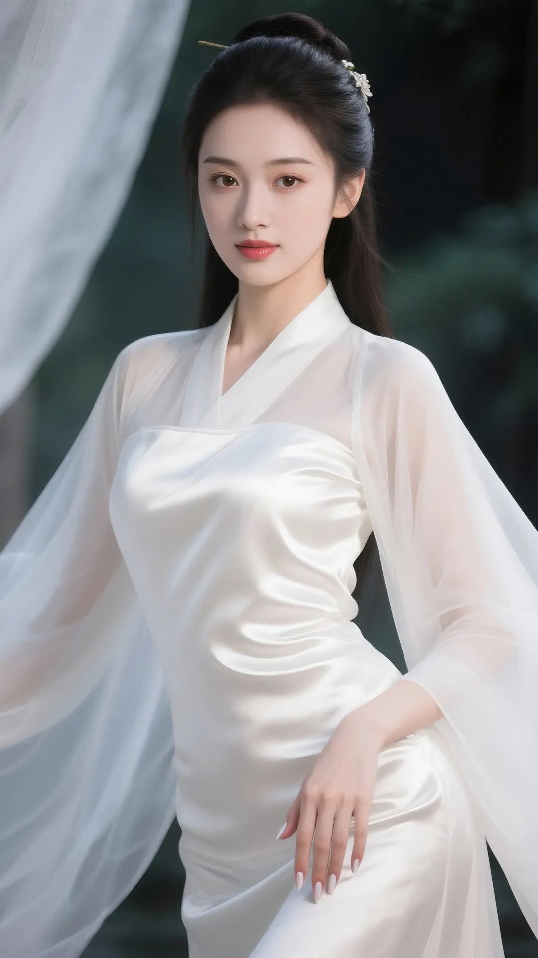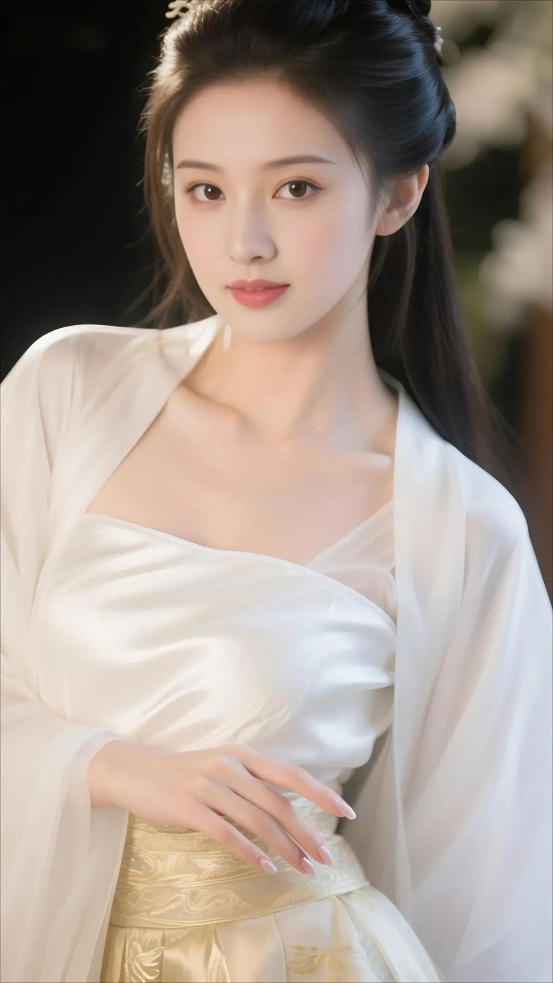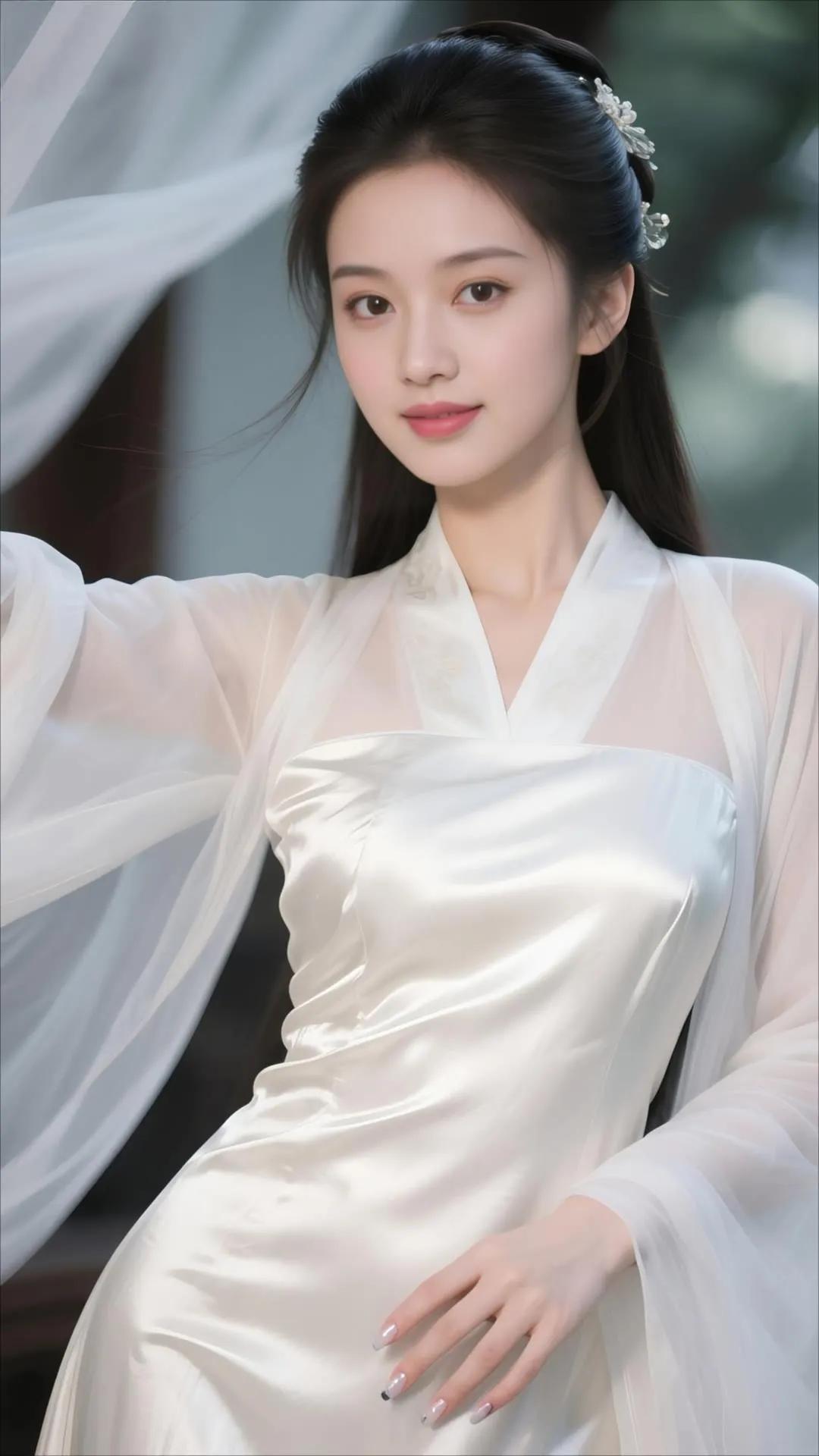 温婉古典,白衣飘飘,宛如画中仙子。