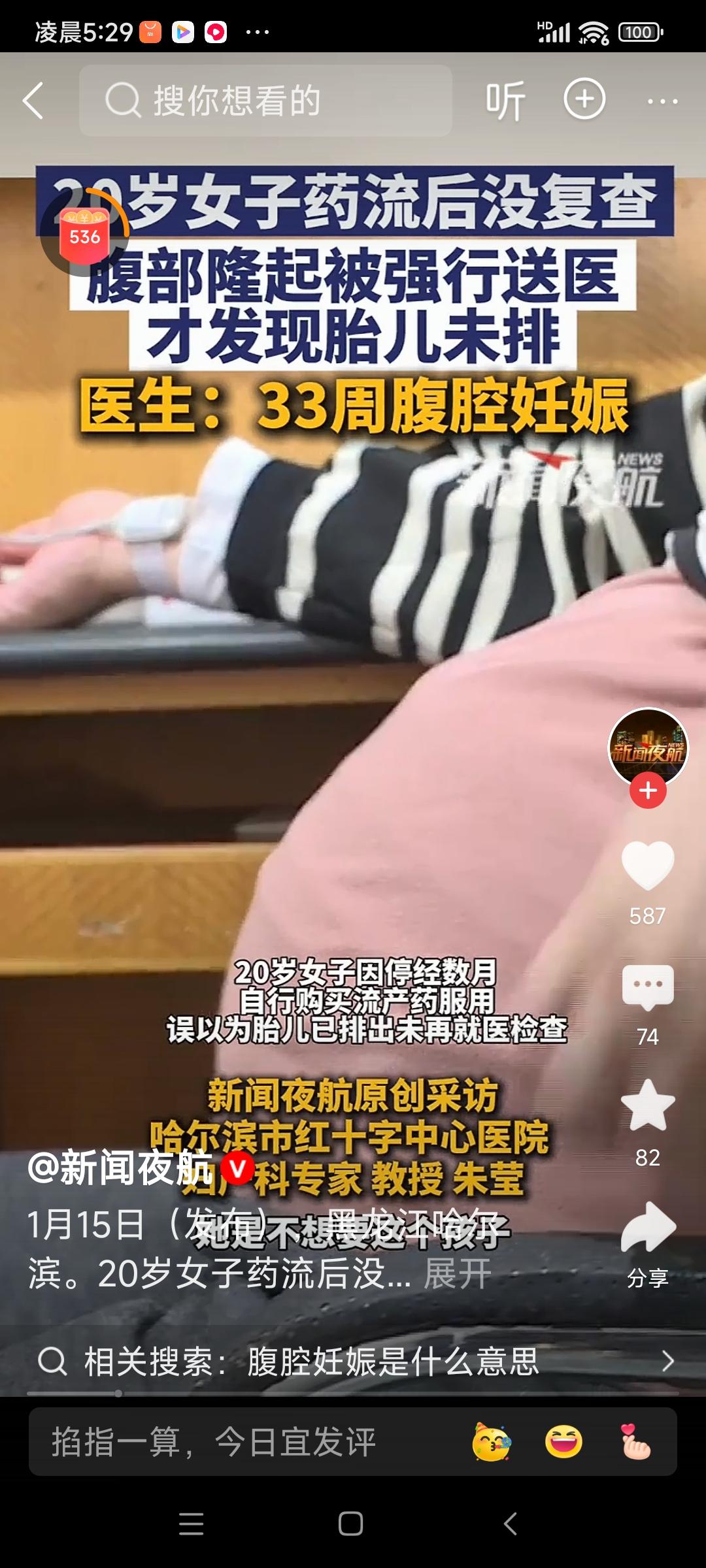 惊心动魄!0岁女子药流后未复查,竟然孕33周腹腔妊娠,生命差点葬送! (素材来自网络) 近日,一则令人震惊的医疗事件引发了广泛关注。一名年轻女子在刚满0岁的年纪,意外怀孕后选择了药物流产,却因为疏忽大意,差点酿成无法挽回的悲剧。她的故事再次敲响了女性健康的警钟:药流后绝不能掉以轻心,复查是生命的保障! 事情的起因要追溯到几个月前。这位年轻的女孩在意外怀孕后,面对家庭和未来的压力,选择了药物流产。她自以为“流干净了”,没有按医生的叮嘱进行复查,也没有及时去医院做孕囊排除确认。她觉得腹部疼痛是正常反应,肚子变大了也只是“长胖了”,完全没有意识到潜藏的危险。 然而,令人震惊的事实是,她的腹部隆起竟然是因为腹腔妊娠!这是一种极其危险的妊娠状态,胎儿并没有在子宫内,而是在腹腔中发育。由于没有子宫的保护,孕囊直接在腹腔内生长,随时可能引发大出血,威胁生命。 直到腹部明显隆起,伴随剧烈腹痛,她才意识到问题的严重性。经医院检查,医生惊讶地发现,孕龄竟然已经达到33周!也就是说,她的腹腔妊娠已经发展了将近三个月,胎儿的生命悬于一线。 这场惊心动魄的生命考验,令人不禁反思:药流后为何会出现腹腔妊娠?其实,药物流产的风险之一就是孕囊未能完全排出。孕囊残留在子宫内或异常位置,可能导致子宫收缩不足,孕囊未能顺利排出。而孕囊异常位置,比如输卵管或腹腔内,就可能引发异位妊娠,包括腹腔妊娠。 此外,药流后没有进行复查,是导致悲剧的关键原因。医生反复强调:药物流产后,必须在一周内进行超声检查,确认孕囊是否完全排出。否则,孕囊残留可能继续发育,甚至迁移到其他部位,形成异位妊娠。而腹腔妊娠的发生,更是由于孕囊在子宫外异常发育,极其危险,治疗难度大,甚至危及生命。 这位女孩的经历也提醒所有女性:药流虽然方便快捷,但绝不是“一劳永逸”的解决方案。药流后,必须严格遵守医生的指导,按时复查,确保孕囊完全排出。否则,一旦孕囊残留,后果可能比你想象的还要严重。 更令人担忧的是,很多女性对药流的风险认识不足,觉得“流干净了就没事”,一味忽视复查的重要性。其实,药流的成功率虽然较高,但仍存在残留孕囊、异位妊娠等风险。这些问题如果不及时发现,后果可能是生命的威胁。 回到这位年轻女孩的案例,她能坚持到33周,算是万幸。腹腔妊娠如果没有及时发现,后果不堪设想。她的生命差点被夺走,幸亏经过紧急手术,挽救了生命,也让人深刻认识到:药流后,复查的重要性不可忽视。 这起事件也引发了社会对女性健康和生育安全的关注。女性在面对意外怀孕时,除了选择药流,更要理性对待,遵循专业医生的建议,做好每一步。只有这样,才能最大程度保障自身安全。 总结来看,药物流产虽方便,但风险不容忽视。药流后,必须按时复查,确保孕囊完全排出,避免发生异位妊娠等严重后果。女性朋友们,一定要重视自己的身体健康,不要因为一时疏忽,酿成无法挽回的悲剧。 最后,提醒所有女性:生命只有一次,健康更是无价。遇到意外怀孕,第一时间去正规医院咨询专业医生,选择科学、安全的终止妊娠方式。不要轻视任何一个细节,因为它们都可能关系到你的生命安全。 愿每一位女性都能在面对生命的选择时,理性、坚强,保护好自己,远离危险。让我们共同关注女性健康,让更多的悲剧不再发生!非正常怀孕