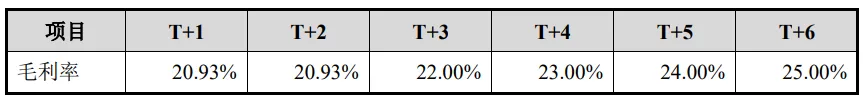 毛利率的测算主要假设及依据如下: