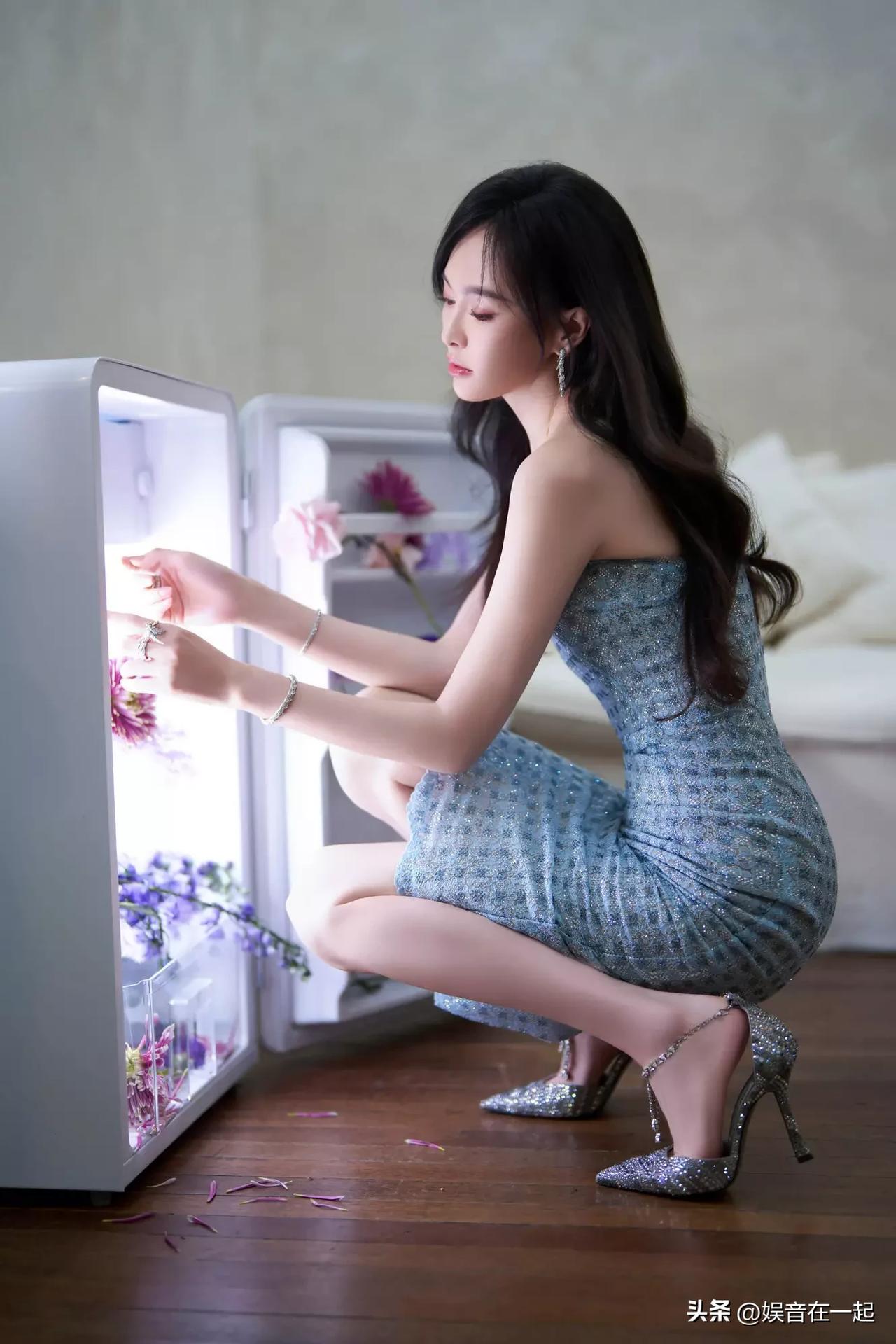 唐嫣一袭蓝色抹胸碎钻裙,直接美出圈。那清冷的色调衬得她肤白如雪,波光粼粼的碎钻在光影下闪闪发光,贵气逼人。 这裙子完美勾勒出她的S型曲线,大方秀出性感好身材。她坐在装满鲜花的冰箱上,大长腿太吸睛,仿佛自带两米八气场。时而化身清冷御姐,垂眸沉思氛围感满满;时而又变回俏皮甜妹,踮脚扶门元气十足。 还有她的直角肩和天鹅颈,搭配钻饰项链耳坠,豪门贵气感直接拉满。唐嫣已经好久没有新作品亮相了!唐嫣