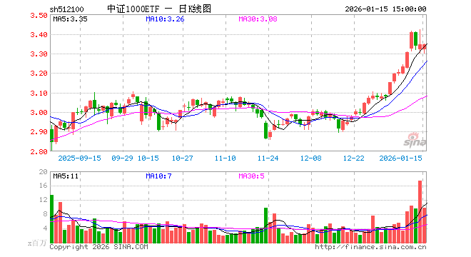 1月15日,中证1000ETF(512100)涨0.00%,成交额32.30亿元。当日份额减少3.36亿份,最新份额为265.59亿份,近20个交易日份额增加14.24亿份。最新资产净值计算值为887.50亿元。