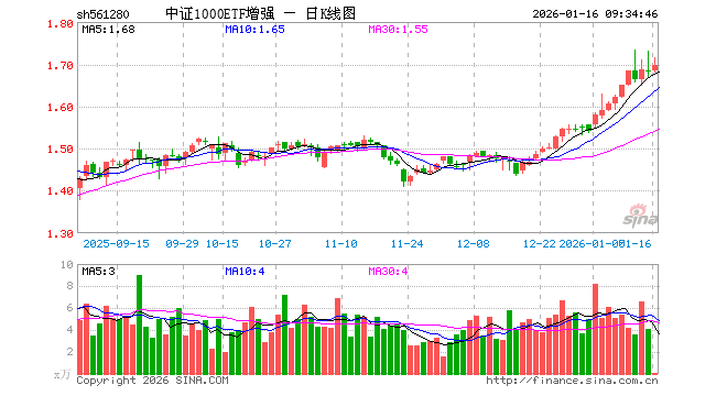 1月16日,中证1000ETF增强(561280)开盘涨0.06%,报1.683元。中证1000ETF增强(561280)重仓股方面,博迁新材开盘涨0.77%,皓元医药涨0.31%,英集芯涨1.01%,彩讯股份跌2.65%,金马游乐跌0.35%,盘江股份涨0.42%,金达威涨0.36%,移远通信涨0.02%,敏芯股份涨0.11%,纳微科技涨0.20%。