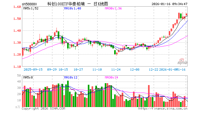 1月16日,科创100ETF华泰柏瑞(588880)开盘涨0.53%,报1.523元。科创100ETF华泰柏瑞(588880)重仓股方面,华虹公司开盘涨2.21%,百济神州跌0.36%,东芯股份涨1.59%,睿创微纳涨0.69%,翱捷科技涨0.95%,安集科技涨0.80%,中科飞测涨1.00%,源杰科技跌0.13%,芯源微涨3.00%,云天励飞涨0.13%。