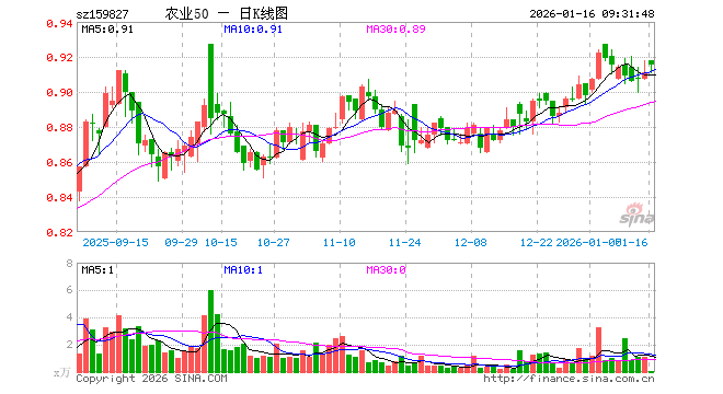 1月16日,农业50ETF(159827)开盘涨0.77%,报0.918元。农业50ETF(159827)重仓股方面,牧原股份开盘涨0.02%,温氏股份跌0.18%,海大集团涨0.21%,藏格矿业涨0.11%,盐湖股份跌0.06%,新希望涨0.22%,亚钾国际涨0.63%,梅花生物跌0.76%,扬农化工涨0.92%,大北农涨0.00%。