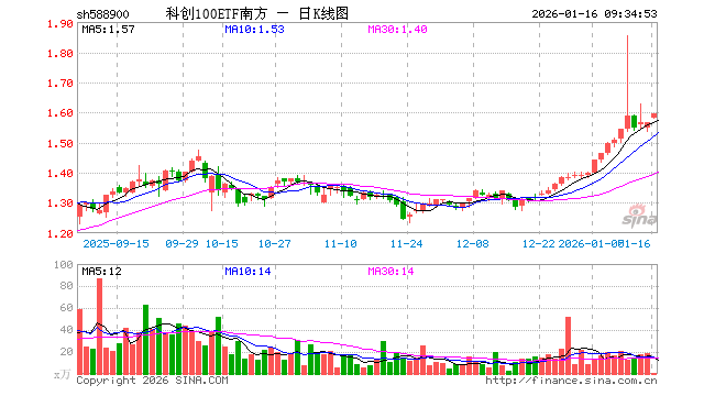 1月16日,科创100ETF南方(588900)开盘涨1.02%,报1.582元。科创100ETF南方(588900)重仓股方面,华虹公司开盘涨2.21%,百济神州跌0.36%,东芯股份涨1.59%,睿创微纳涨0.69%,翱捷科技涨0.95%,安集科技涨0.80%,源杰科技跌0.13%,中科飞测涨1.00%,芯源微涨3.00%,云天励飞涨0.13%。