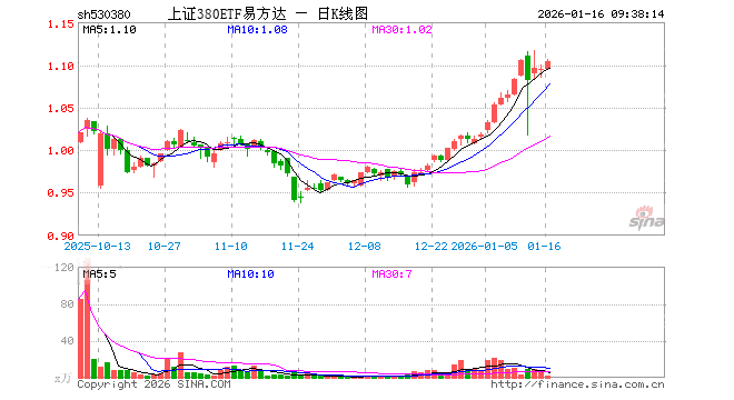 1月16日,上证380ETF易方达(530380)开盘涨0.00%,报1.095元。上证380ETF易方达(530380)重仓股方面,卧龙电驱开盘涨0.89%,赤峰黄金跌1.31%,瑞芯微涨1.30%,亨通光电涨1.53%,永泰能源涨0.61%,四川长虹跌5.05%,九号公司涨0.06%,东阳光涨0.17%,均胜电子涨0.44%,东吴证券涨0.44%。