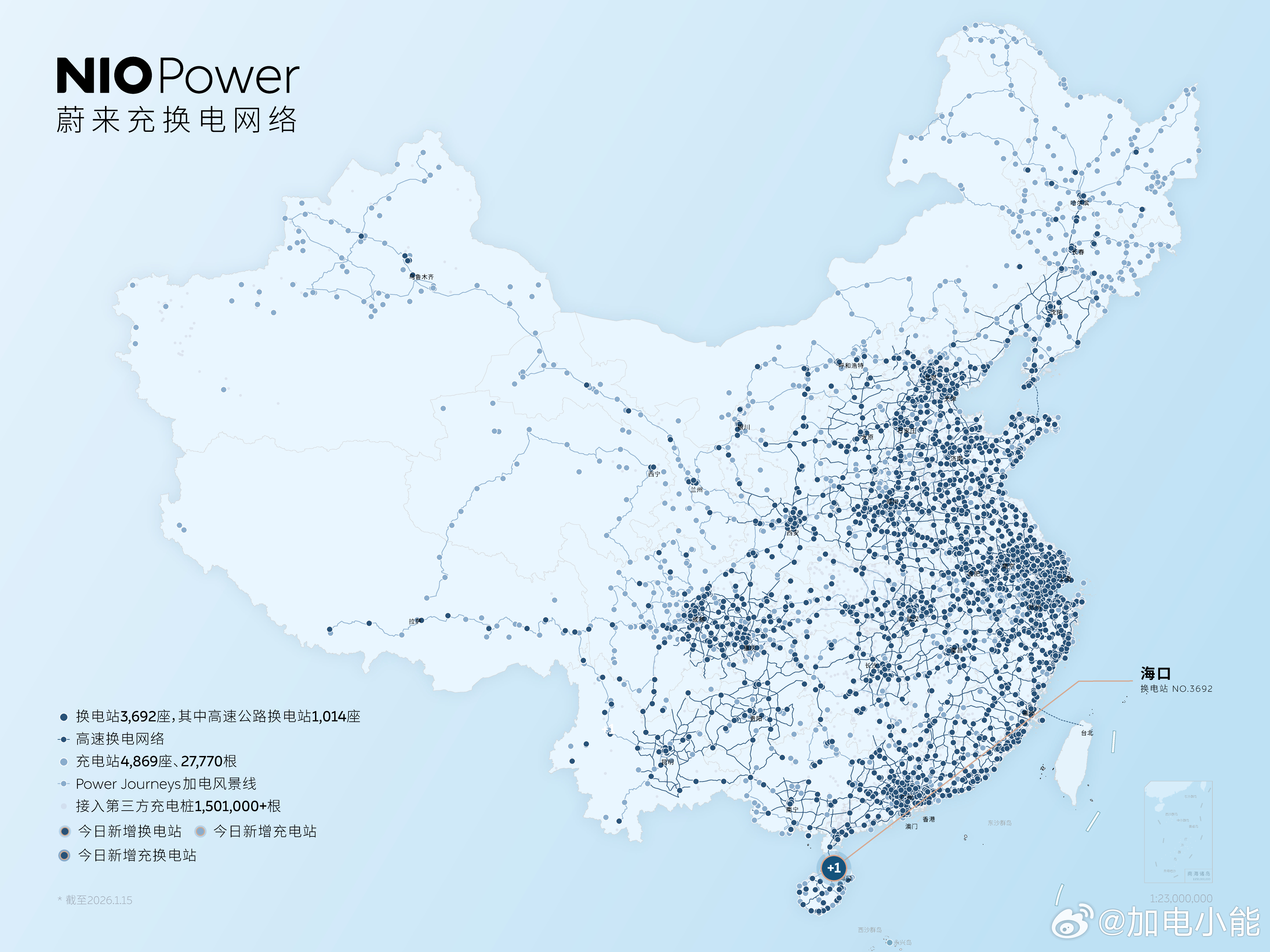 1月15日 NIO Power 今日上线NO.3692 蔚来换电站 | 海口秀英