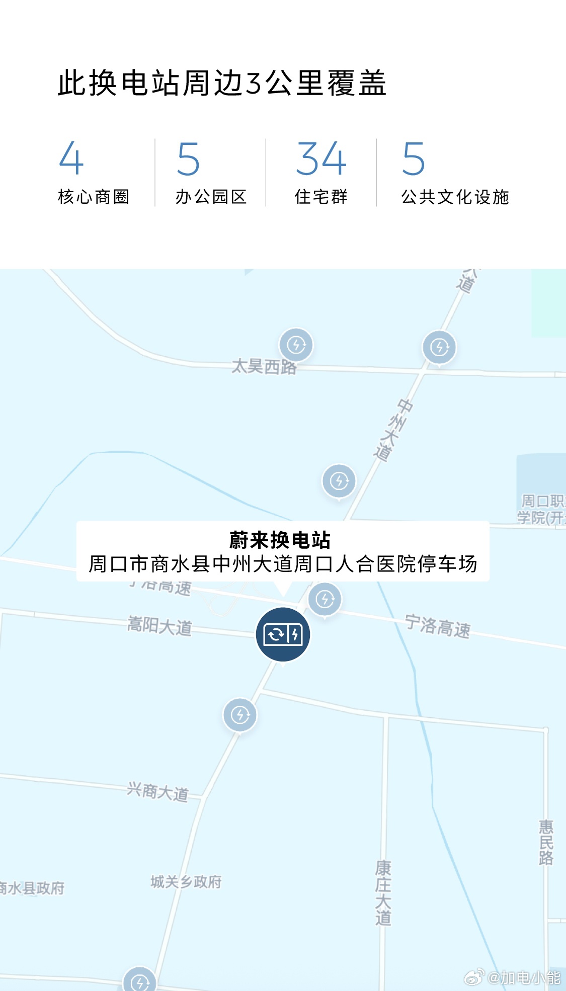 换电站是电动车的加油站蔚来换电站 | 周口商水人合医院 上线周边3公里覆盖4大核