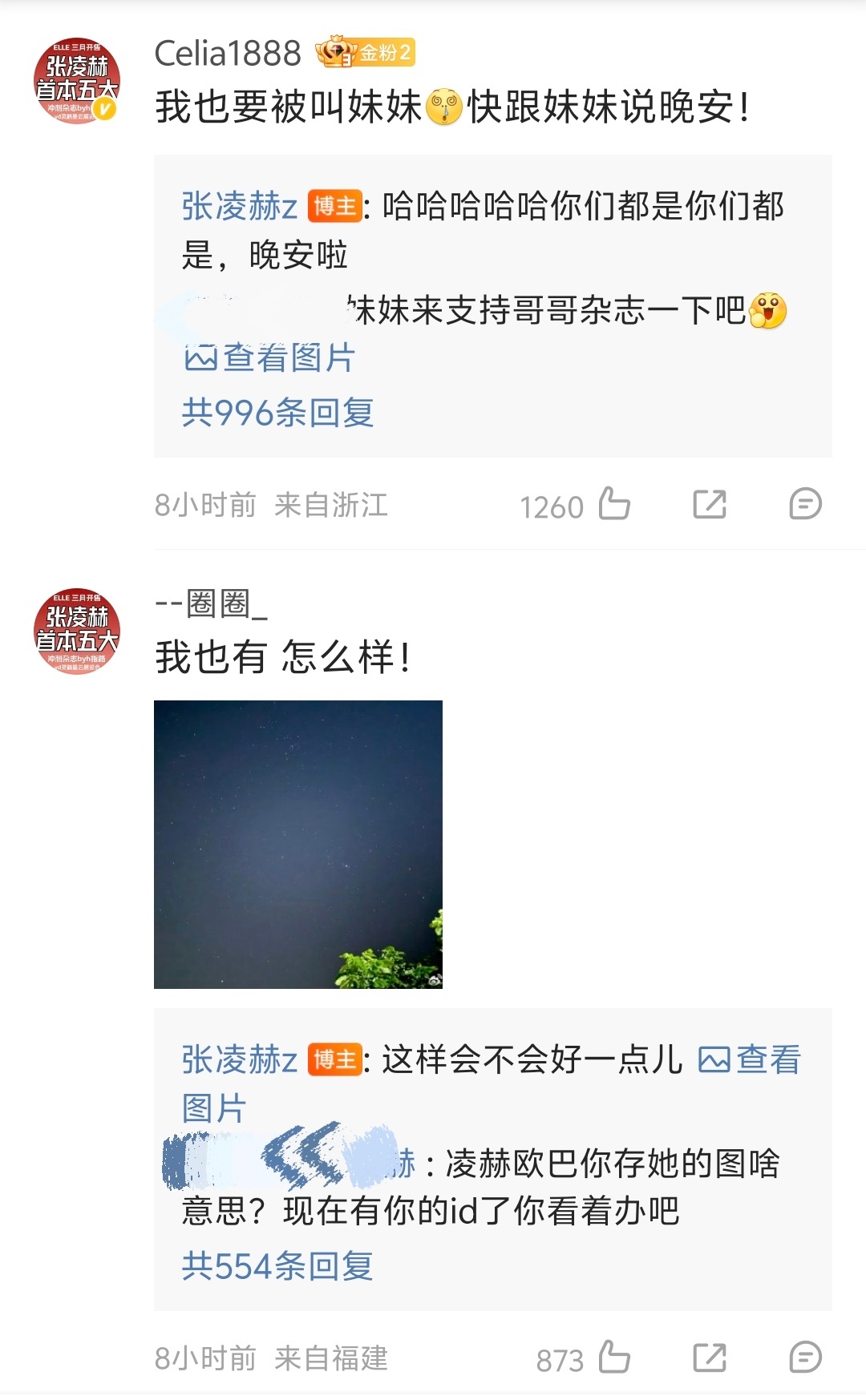 【张凌赫帮粉丝修星空图】张凌赫给粉丝P图 昨晚,睡前分享自己拍摄的星空照,评论区里粉丝晒了自己拍的,他还帮忙P图并评论,“这样会不会好一点儿 ?”你最喜欢他镜头里的哪处风景,来互相安利!