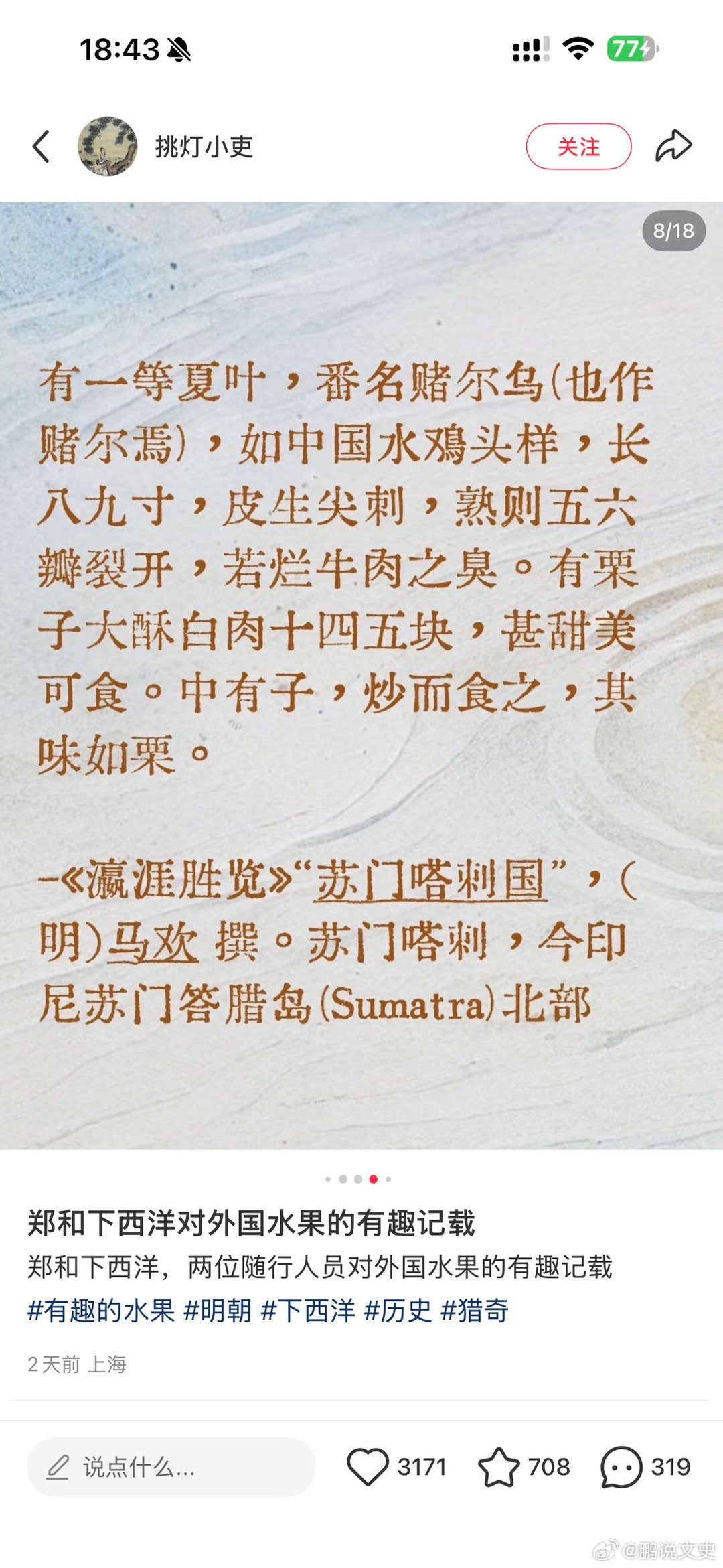历史知识 郑和下西洋船员记录的榴莲、菠萝蜜等水果水果 臭如烂蒜、味如蜜