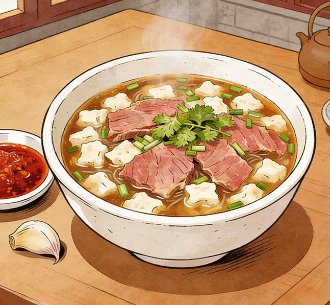 没有故事的美食是苍白的。此刻,我想起了贾平凹和他的羊肉泡馍。作为土生土长的陕西人,贾平凹对于羊肉泡馍也有着深厚的感情。他还曾经专门写过一篇名为《羊肉泡馍》的文章。他不仅详细描述了羊肉制法、馍饼制法,以及食客净手掰馍之趣,还有烹饪师烹制诸法,惟妙惟肖,令读者身临其境。