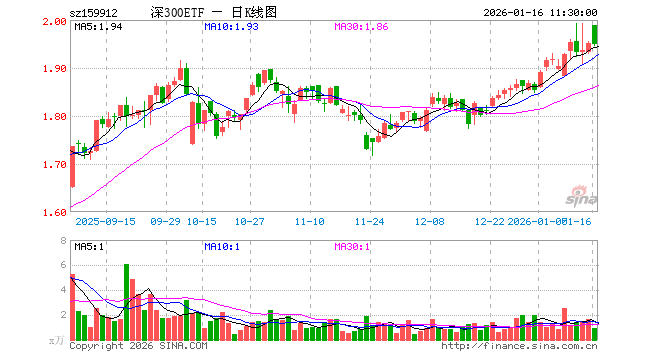 1月16日,截止午间收盘,深300ETF汇添富(159912)跌0.05%,报1.949元,成交额184.10万元。深300ETF汇添富(159912)重仓股方面,宁德时代截止午盘跌0.21%,美的集团涨0.18%,中际旭创涨0.35%,东方财富跌0.29%,新易盛跌0.18%,立讯精密涨2.09%,比亚迪涨0.44%,阳光电源涨2.33%,五粮液跌0.62%,胜宏科技跌0.05%。