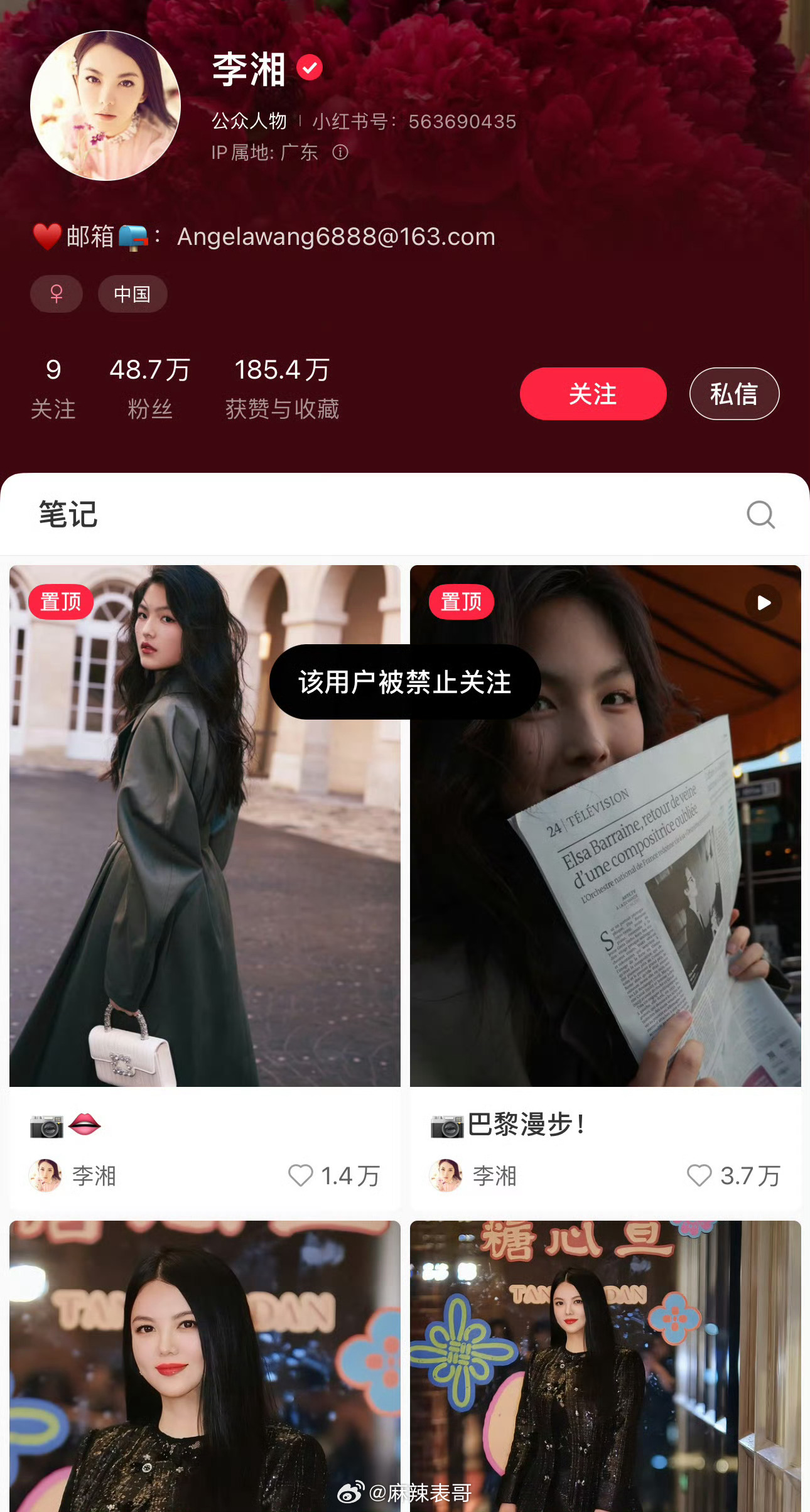 李湘全平台账号被禁止关注了