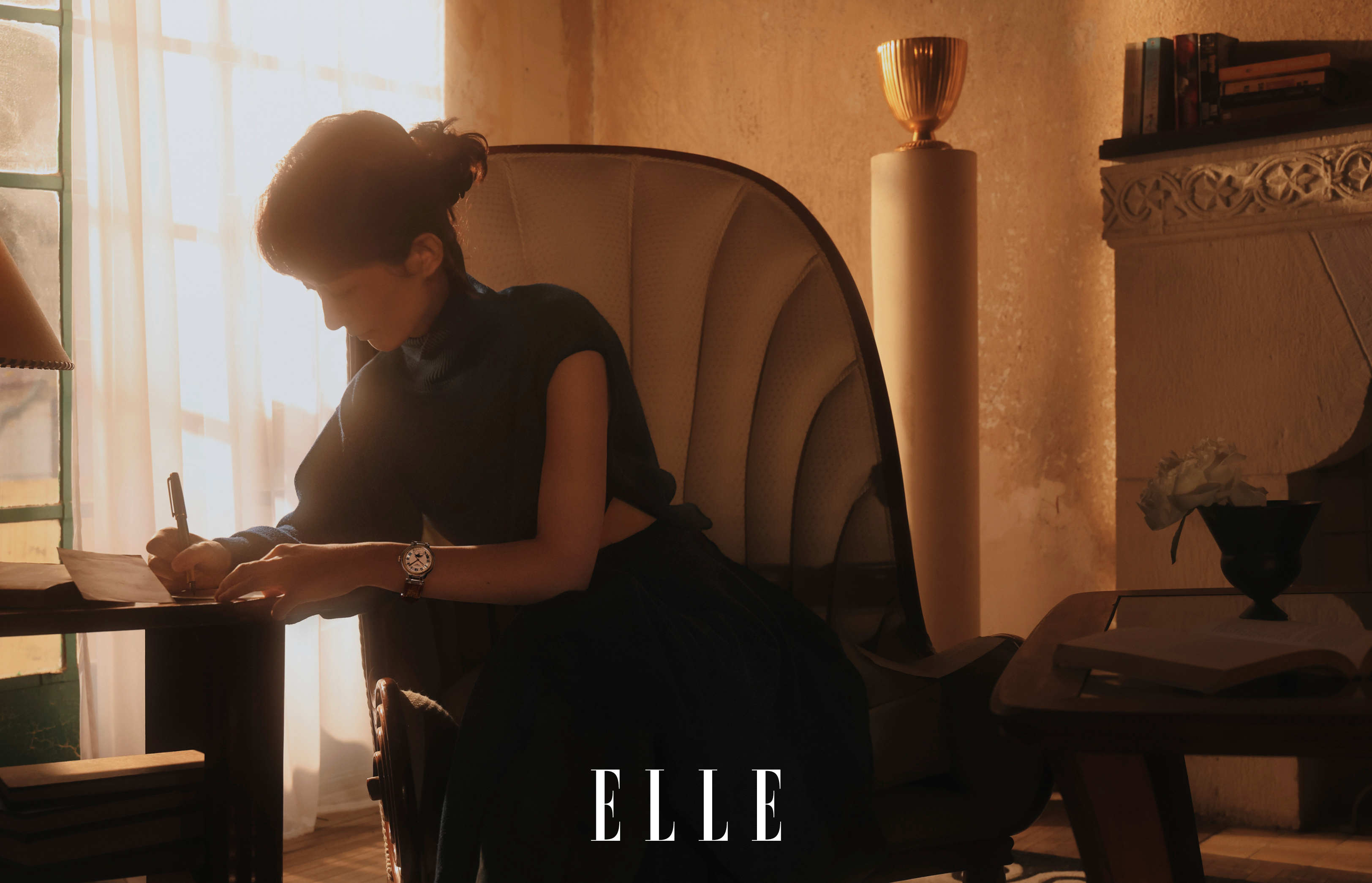 赵丽颖复古光影的静与柔 高清大图,赵丽颖ELLE 2月刊封面大片,温暖阳光下油画